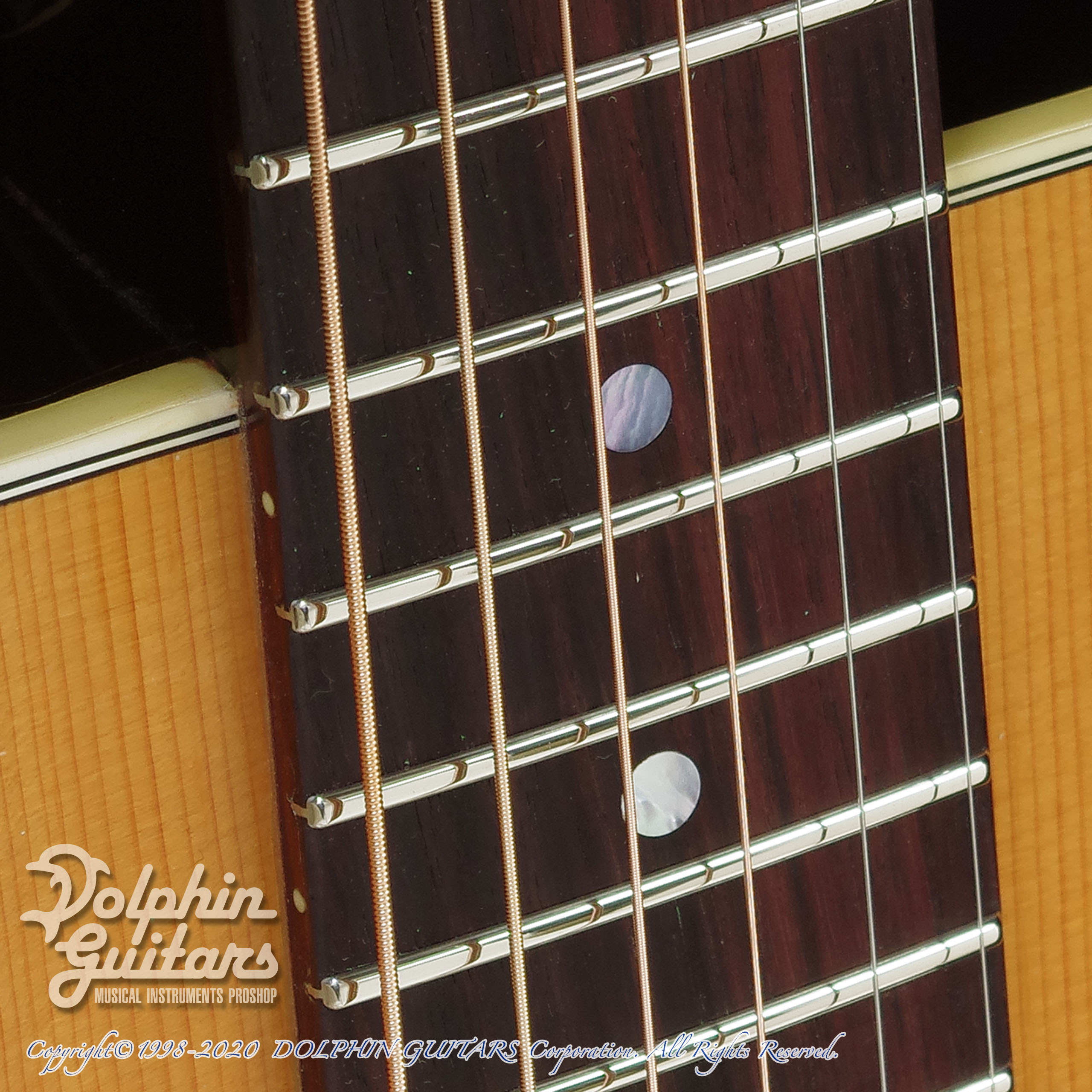 スクエアショルダーボディにバナーロゴやティアドロップPG、スキャロップドXブレイスなど記念モデルにふさわしい特別仕様のJ-30。豪快な鳴りでありながら各弦・各ポジションどこを弾いてもバランス良く反応し、絶品サウンドの個体です。ストロークスタイルのみならず、フィンガースタイルソロギターとしても素晴らしい表現力を持つ個体です。