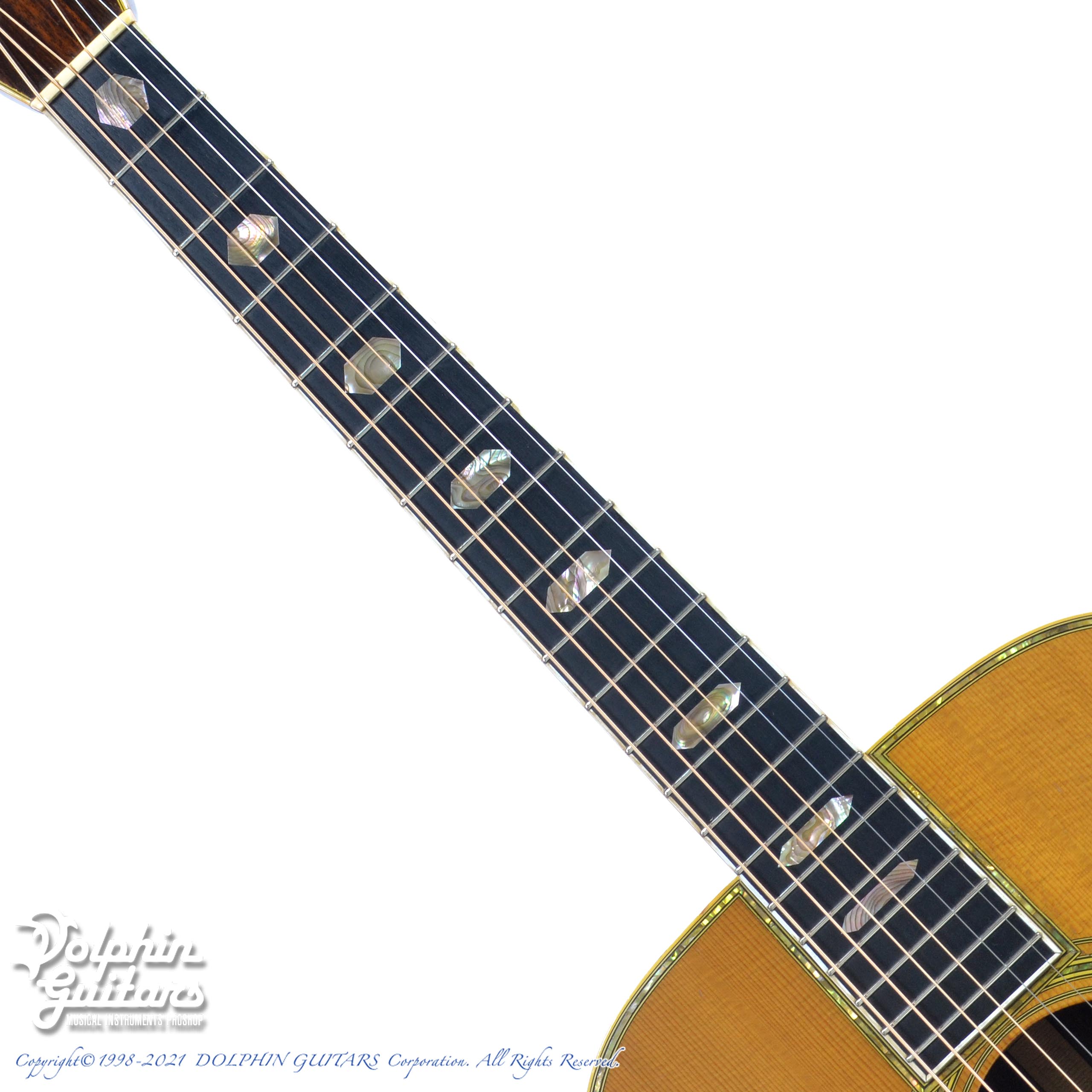 シトカ・スプルース・トップ、インディアンローズウッド・サイド&バック、マホガニー・ネック、スキャロップドXブレイス、エボニー指板&駒、ヘキサゴン・インレイ、 アバロン・トリム、グローバー糸巻き仕様。