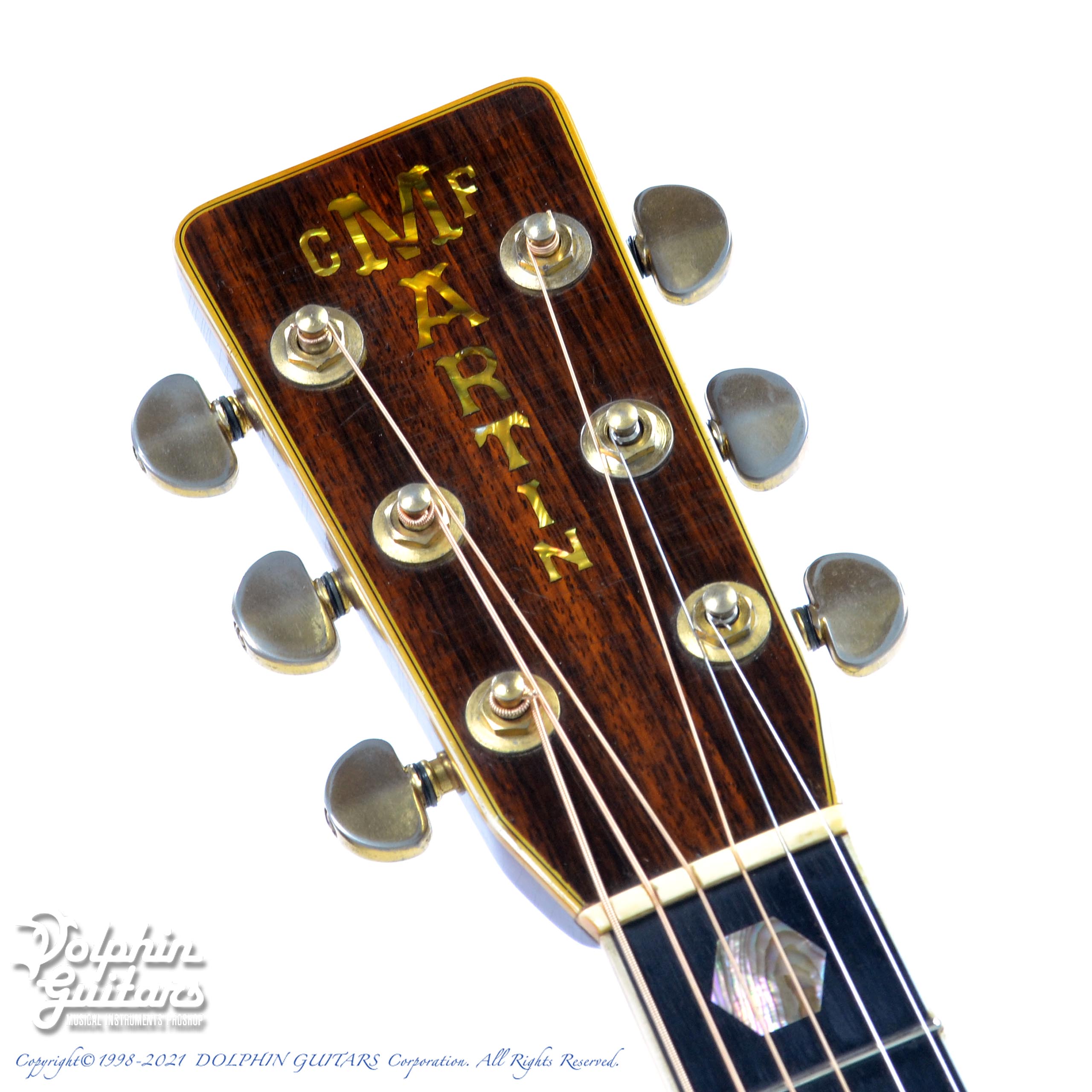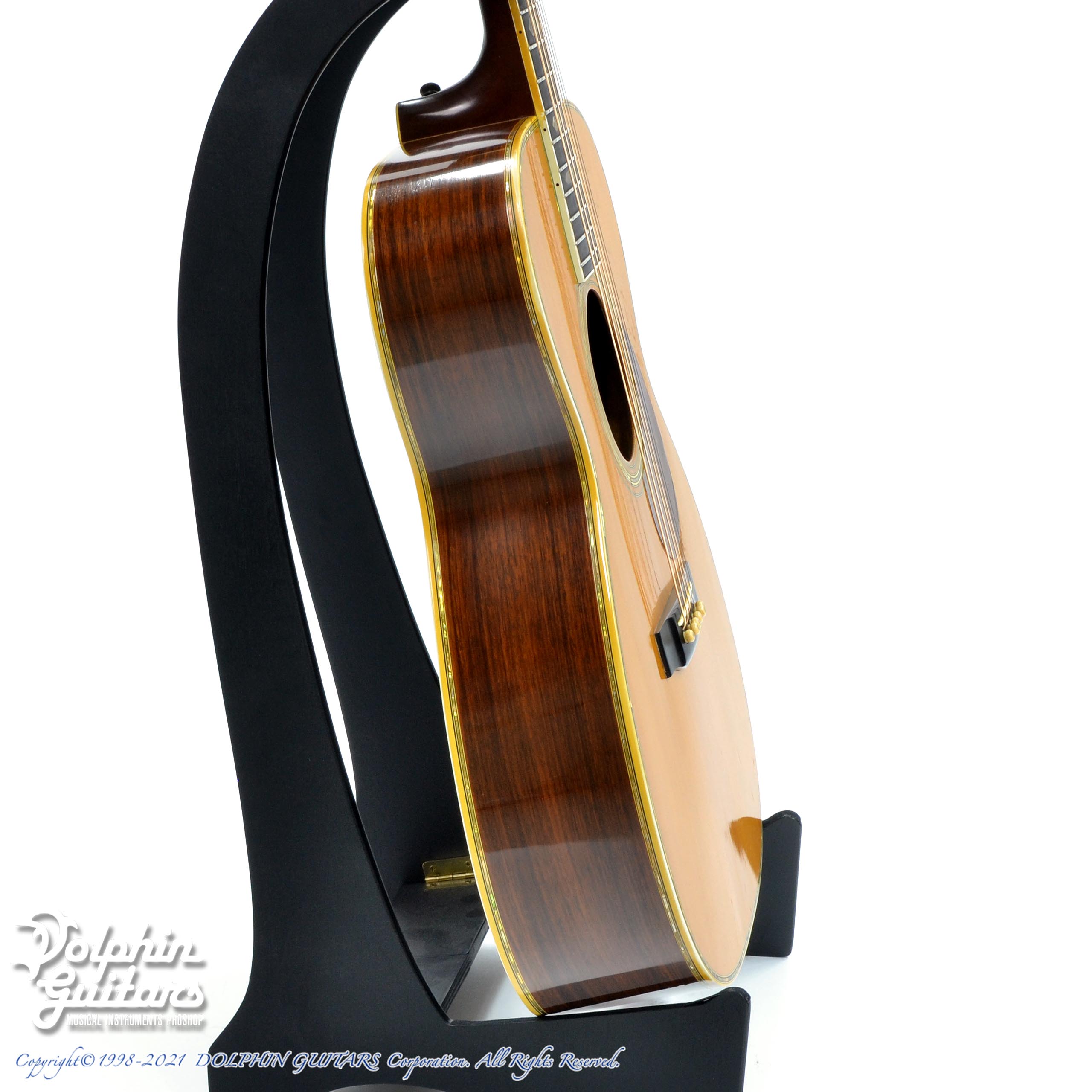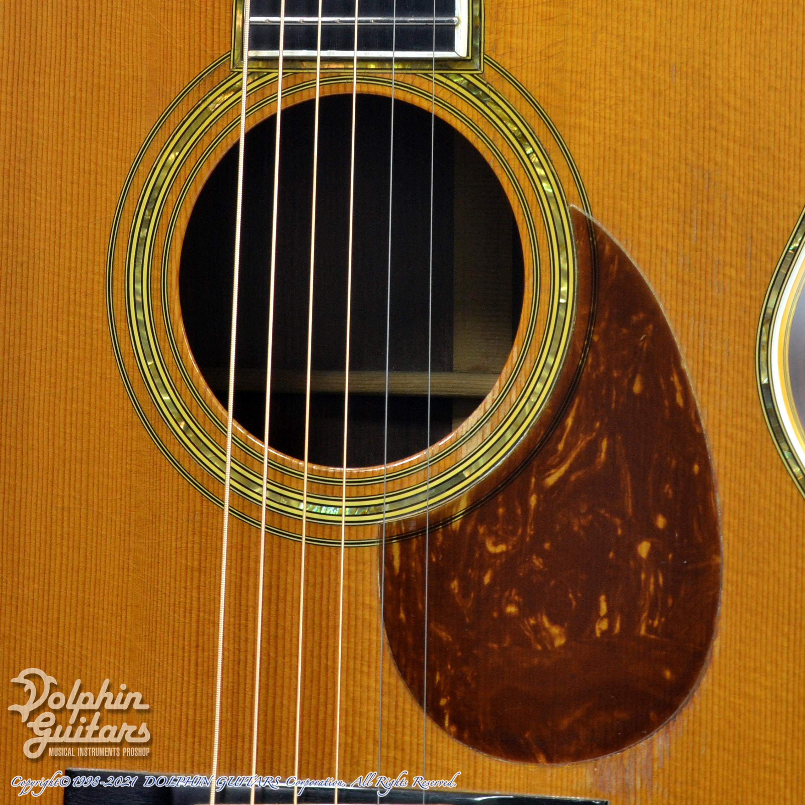赤茶色のピックガード、無垢材のアバロン細工、渋く仕上がったボディが醸し出す大変良い雰囲気です。ボディはノークラックで、ナット&サドル などの消耗パーツ以外はオリジナルを保っており、今まで大切に弾かれてきたであろうことが伝わってきます。
