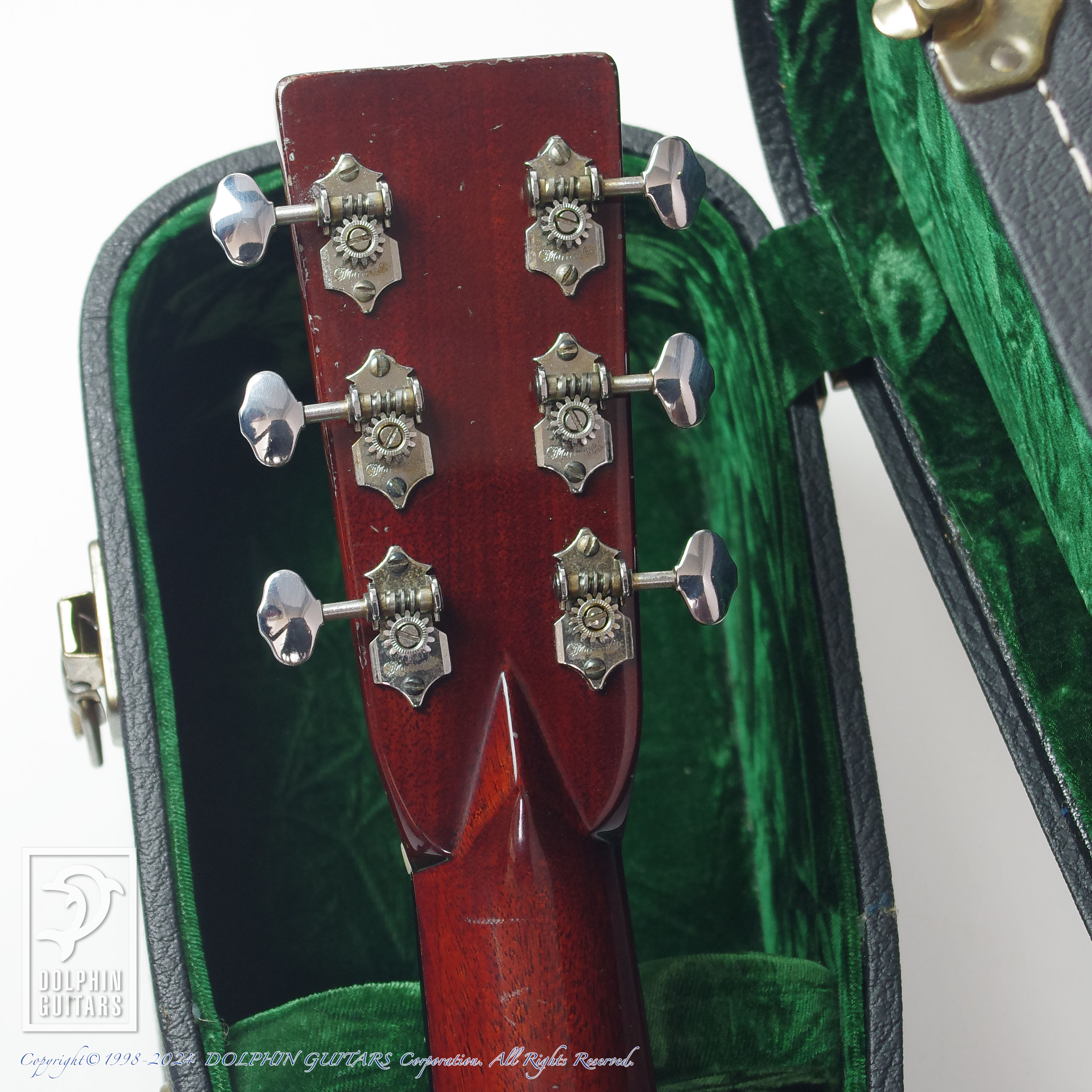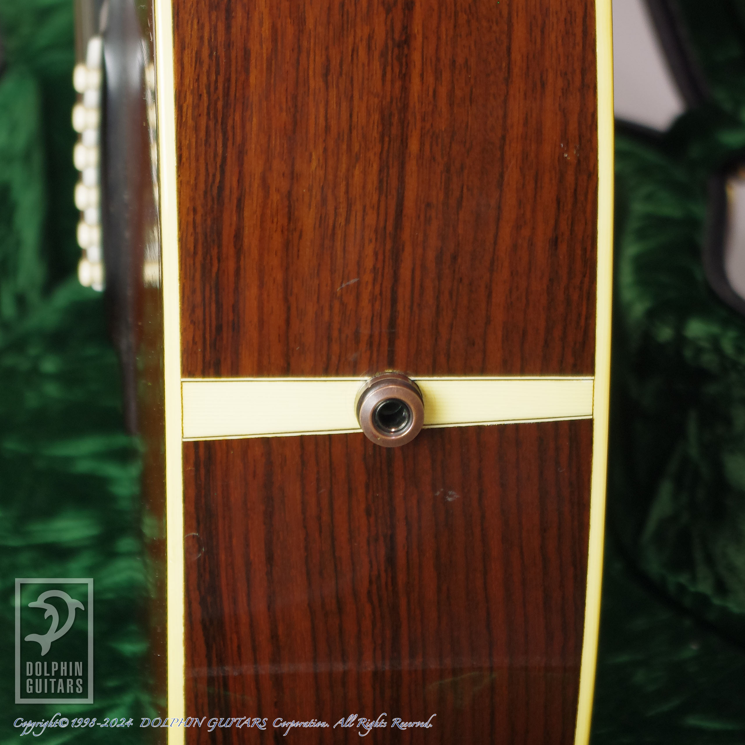 当店入荷時にフレットの消耗が激しかったためフレット交換やナット作成交換を施し、演奏性を重視してセットアップを施しました。後付けにてL.R.Baggs Lyricが搭載されており、その他ペグがオリジナルと同タイプのMartin Logo入りのGotohペグに交換されております。
