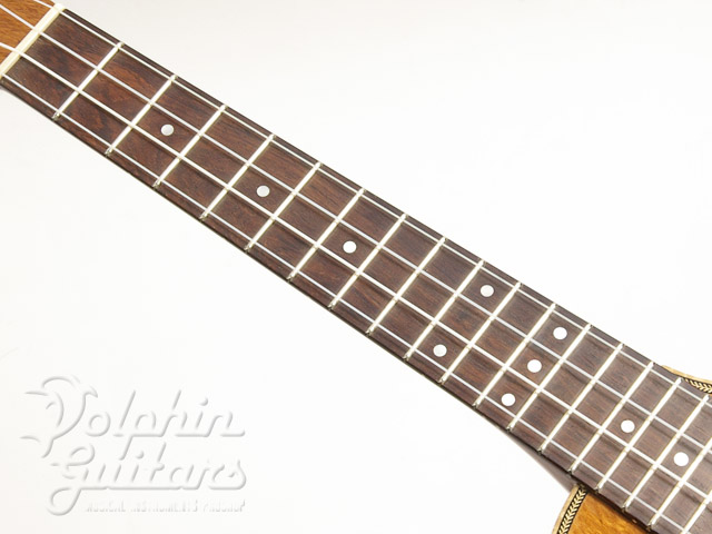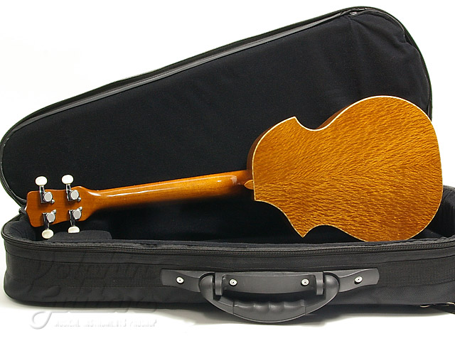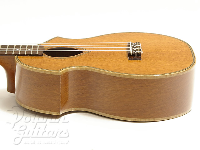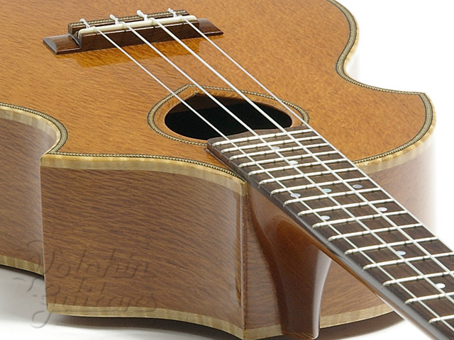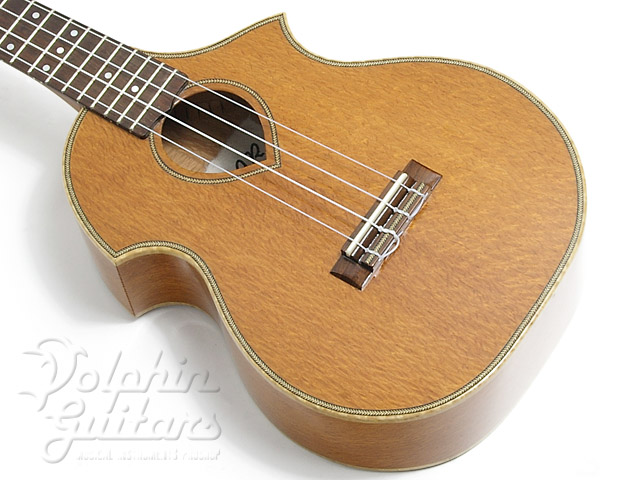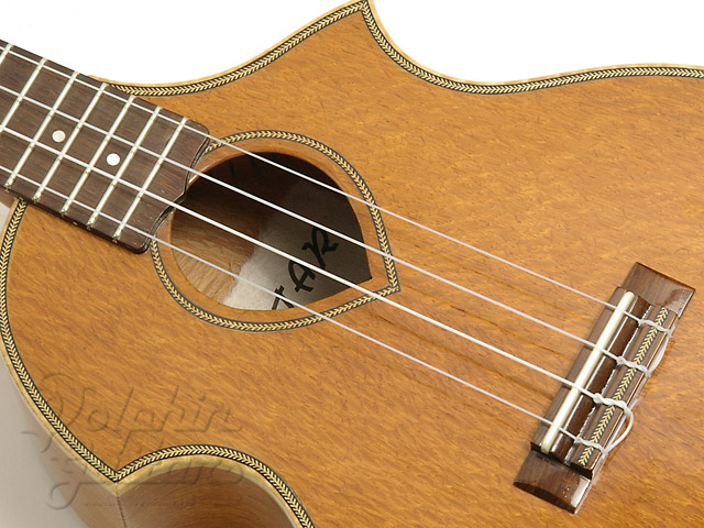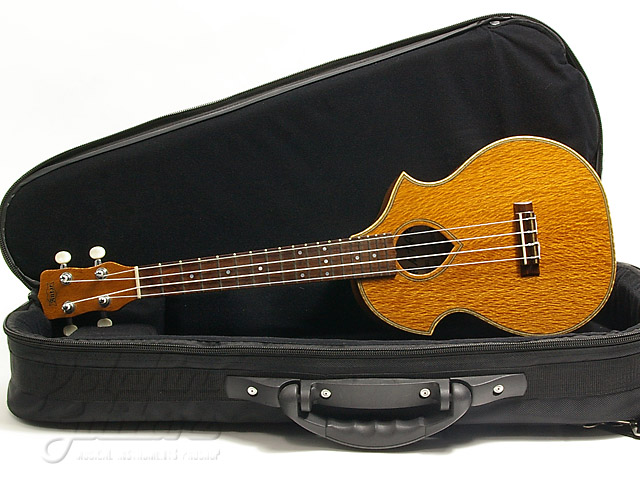 本器はボディ材に独特な木目とトーンが特徴であるレースウッド材を使用し、オリジナリティに富んだボディシェイプを持つテナーウクレレ。