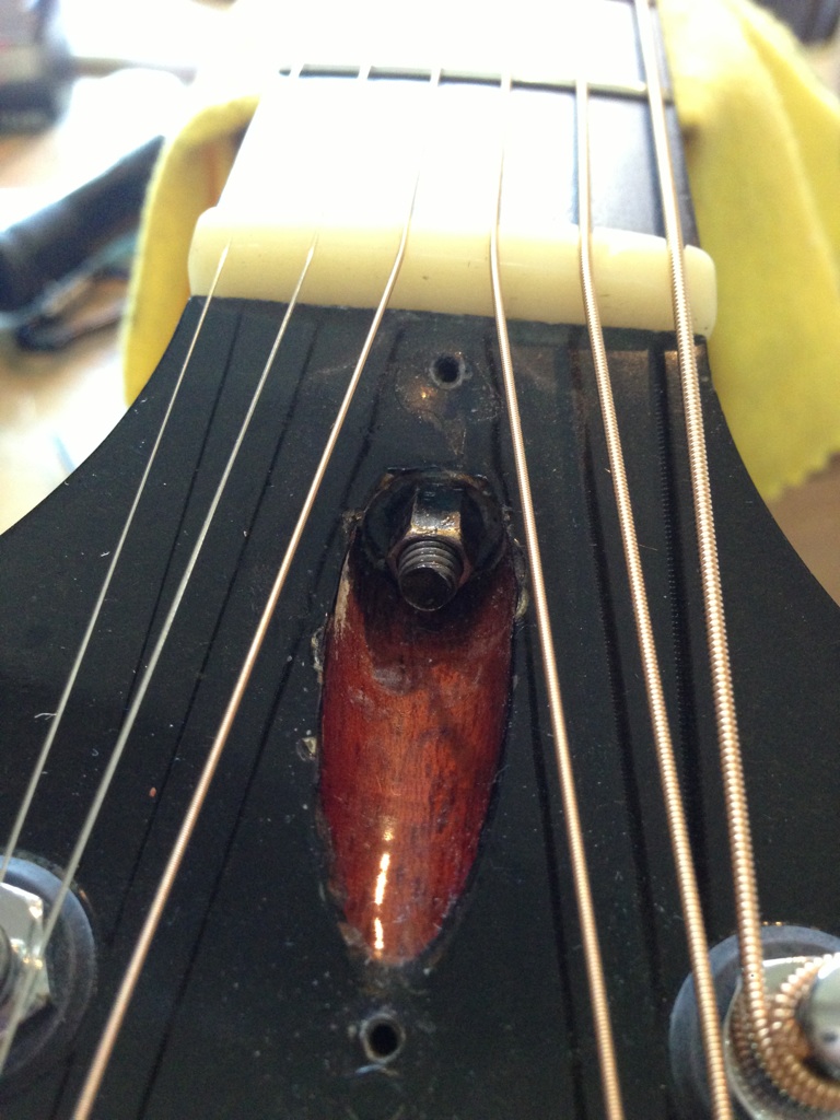 ヘッド部からロッド調整をするタイプのギブソンやギルドの中でもヴィンテージ品はビューレットナットの動きがちょっとイマイチ?な物があります。