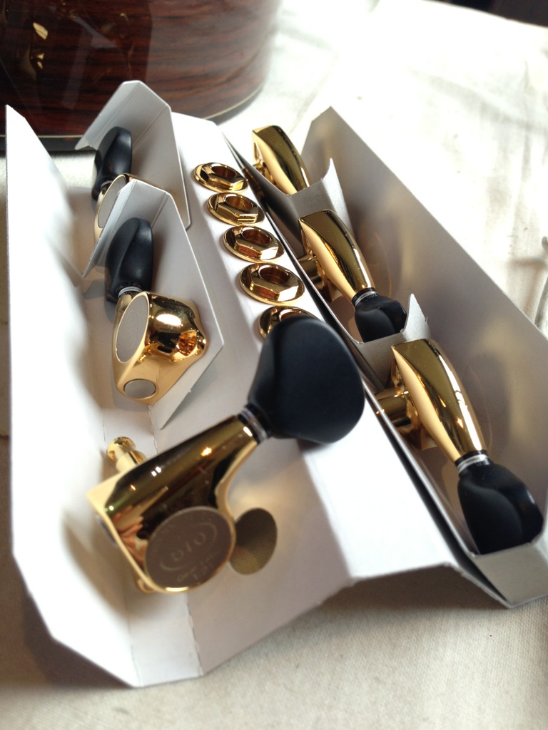 アコースティックギターではGotoh製ペグの使用頻度が非常に高く、Martinロゴ入りのオープンバックペグやGibsonやTaylorの一部のモデル、さらには海外の有名ルシアーSomogyi、Traugott、Kevin Ryan、GreenfieldなどもGotoh 510シリーズを使用してますね。それだけ信頼のおけるパーツだと言えます。
