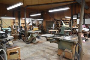 主に木材の細かい寸法出し作業やロゼッタ(口輪)の加工作業は、こちらで行われます。