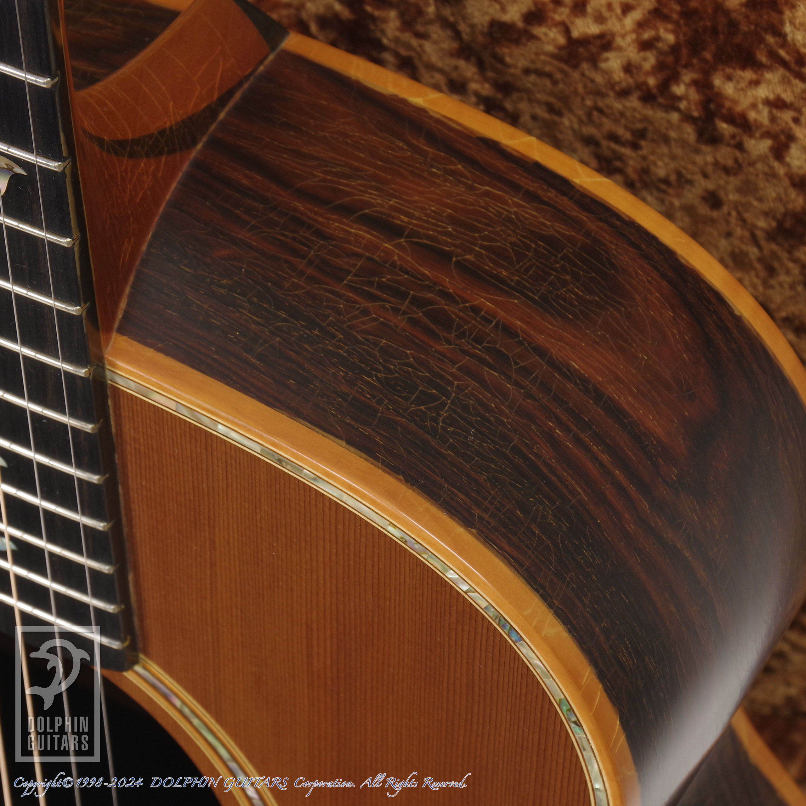 ローデンは1976年の創業時からジャンボサイズであるモデルLが代表的存在となり、1990年頃から現在のモデルOへと変更されました。38シリーズはハカランダボディの最上位グレードであり、ローデンのフラッグシップモデルであります。