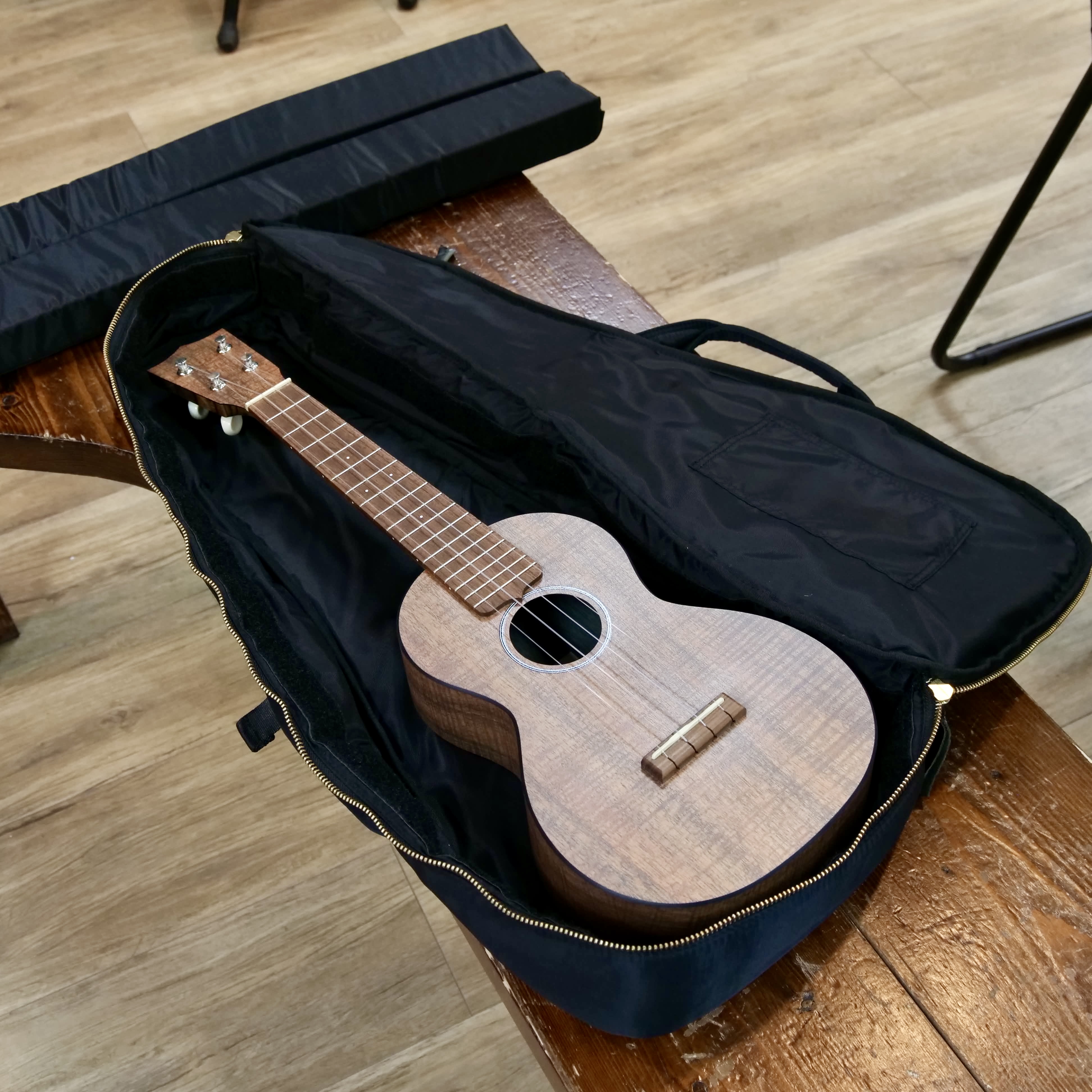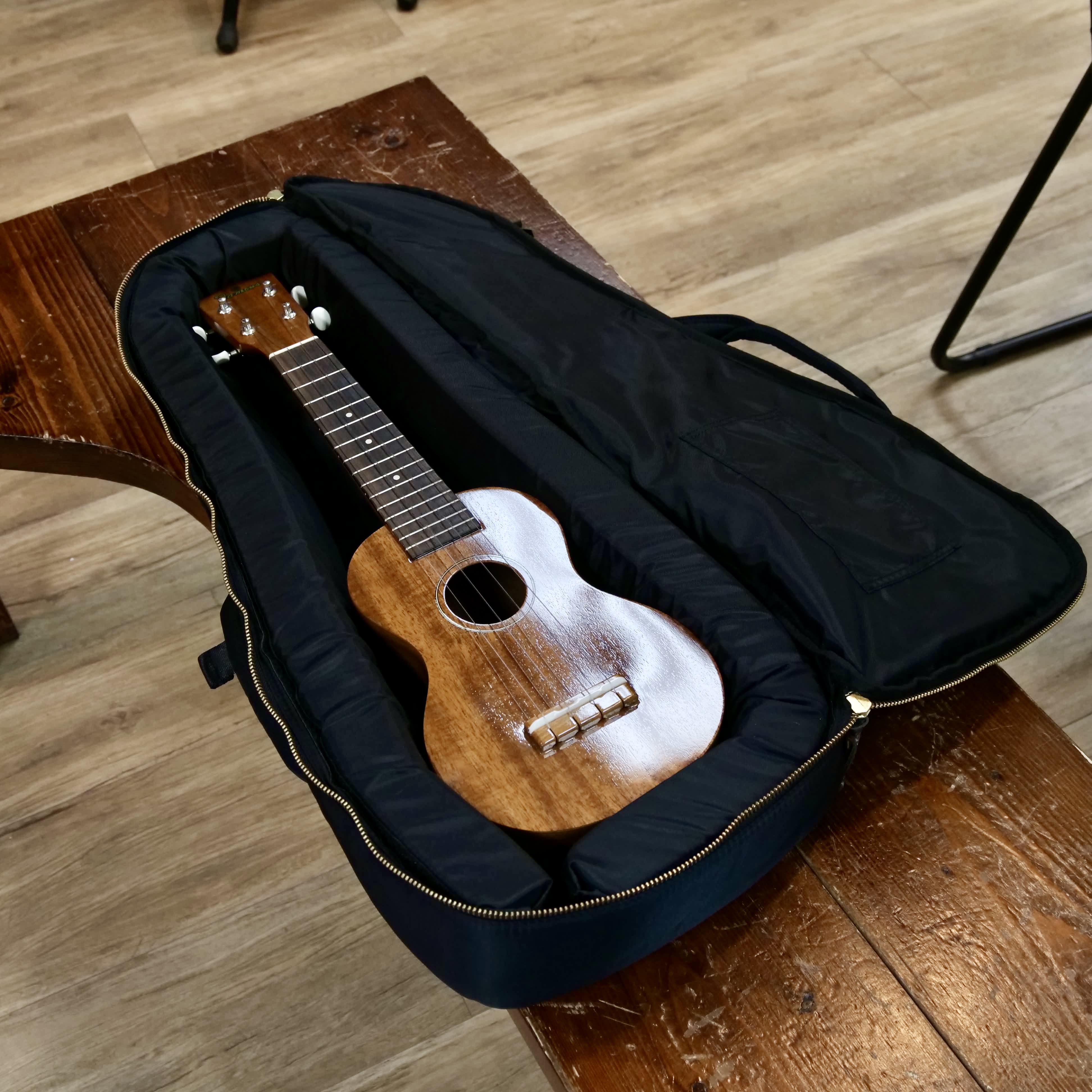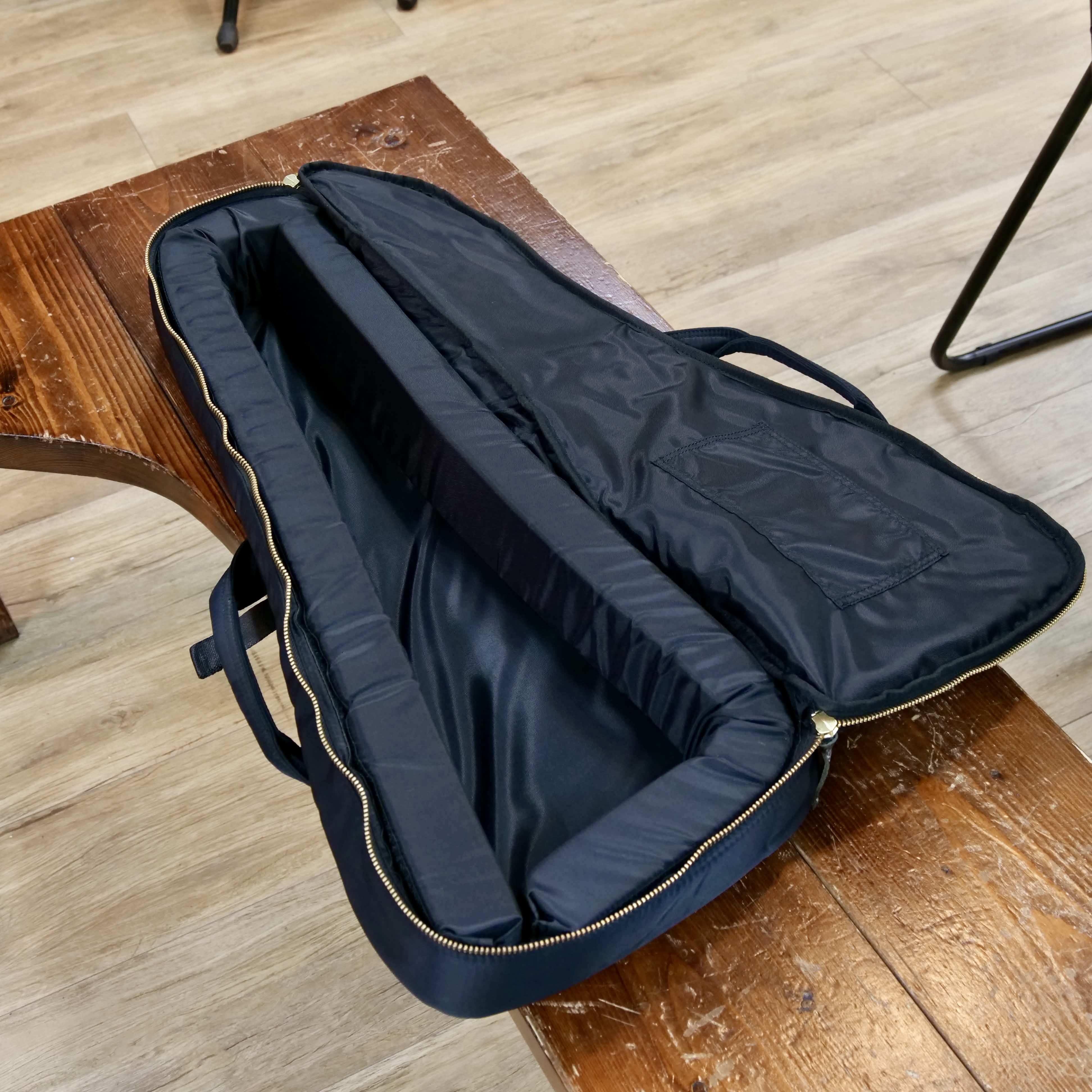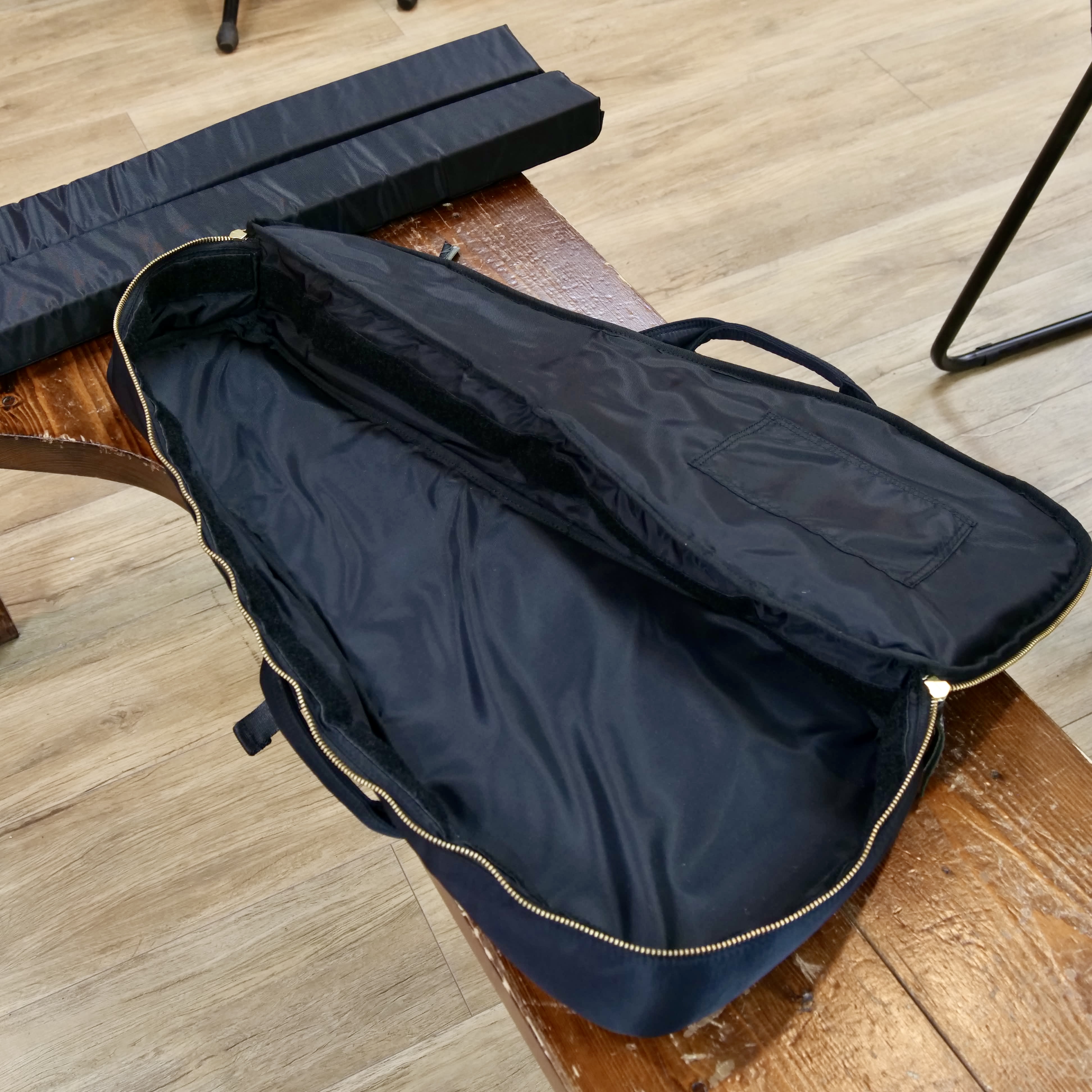 ケース内のクッションは取り外し可能なので、ピックアップ付きウクレレを入れる際にクッションを動かして隙間を作り収納しやすくすることができます。