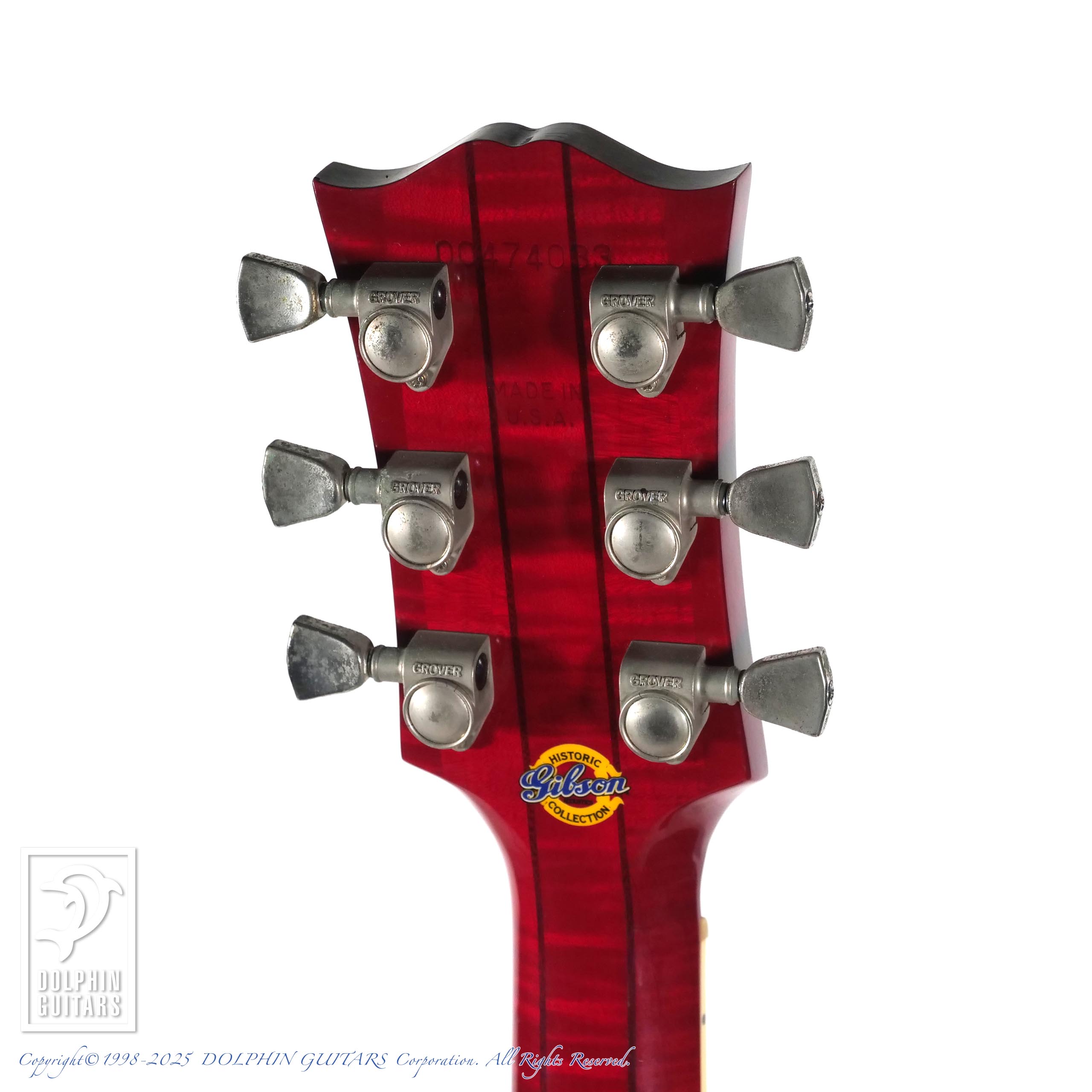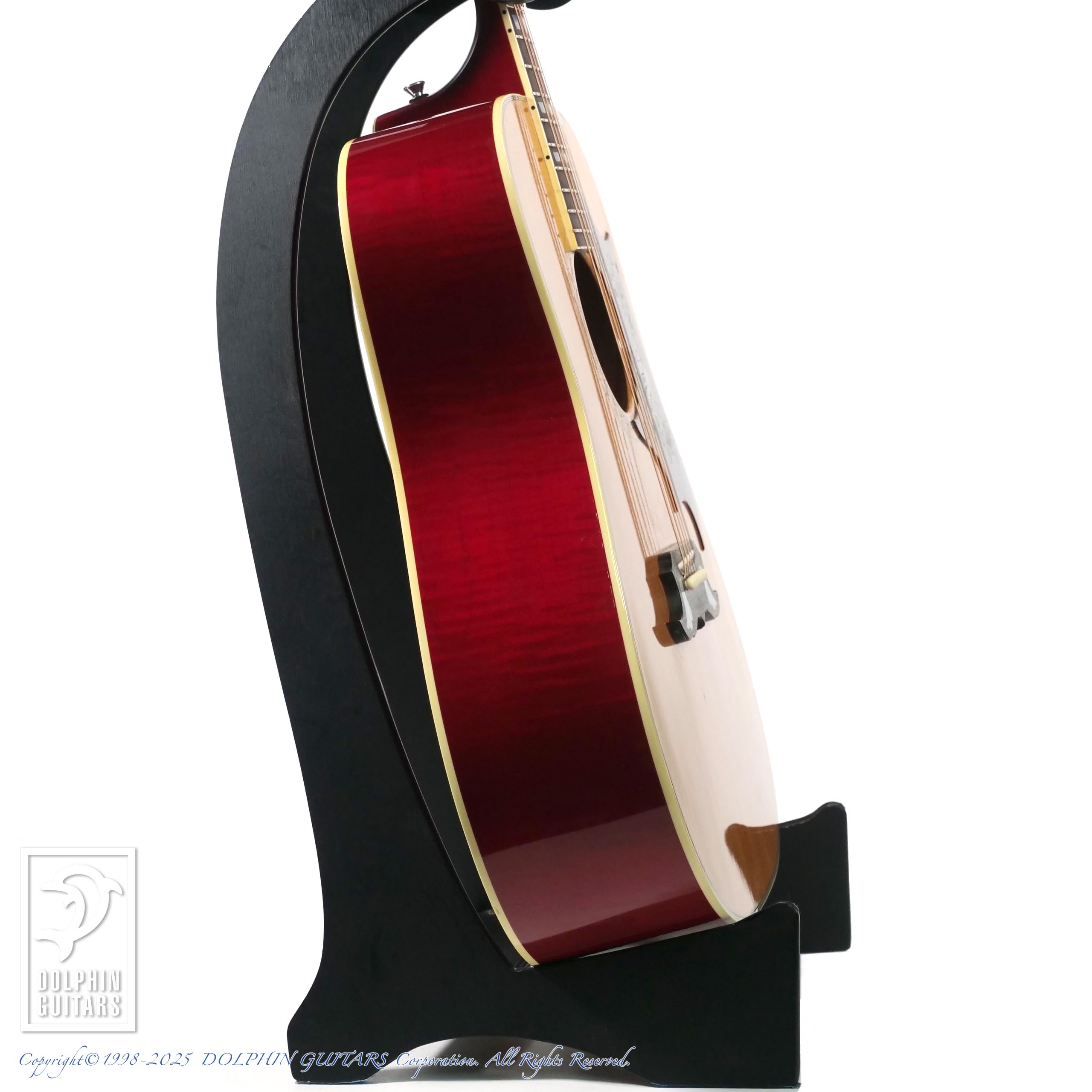 鮮やかなチェリー・サンバースト・フィニッシュに、ピックガードのダブ(鳩)モチーフが印象的なモデル。スクエアショルダーの力強いシルエットに、マザー・オブ・パールのダブ・インレイを施したブリッジと指板のダブル・パラレログラム・インレイが華を添えます。高級感と存在感を兼ね備えた、ギブソンらしい気品漂うデザインです。