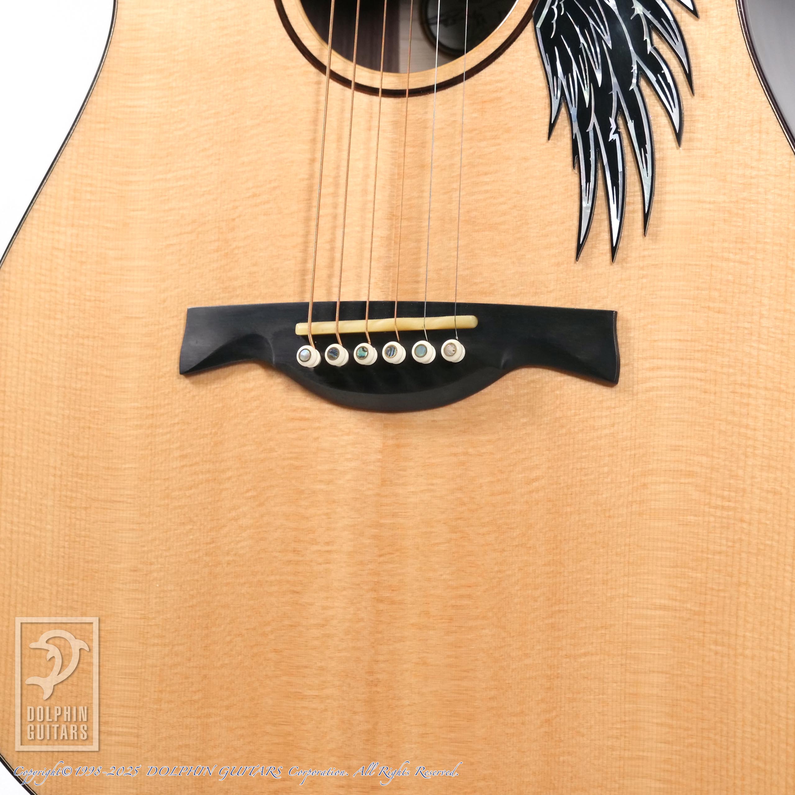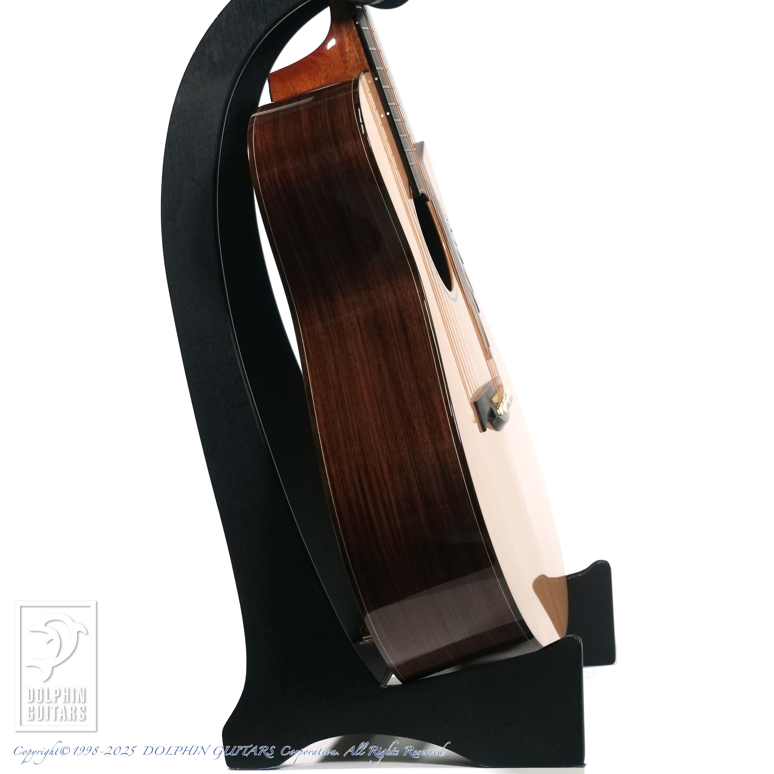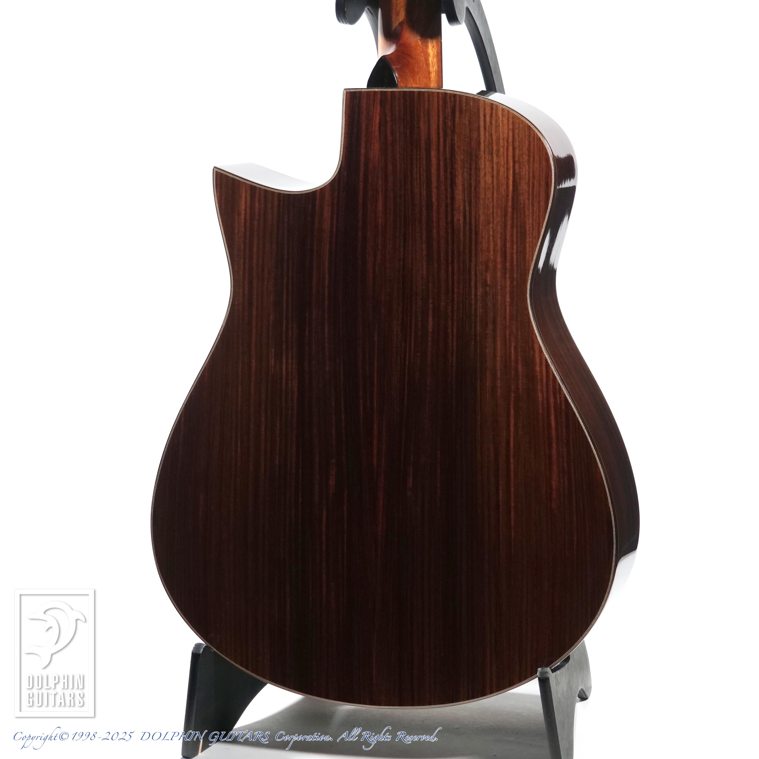 ボディシェイプはオリジナルドレッドノート+フローレンタインカッタウェイ。厳選された素材で組まれたボディは低音〜高音までバランスよくまとまり、押尾さんのストロークプレイにも完璧に応えてくれます。