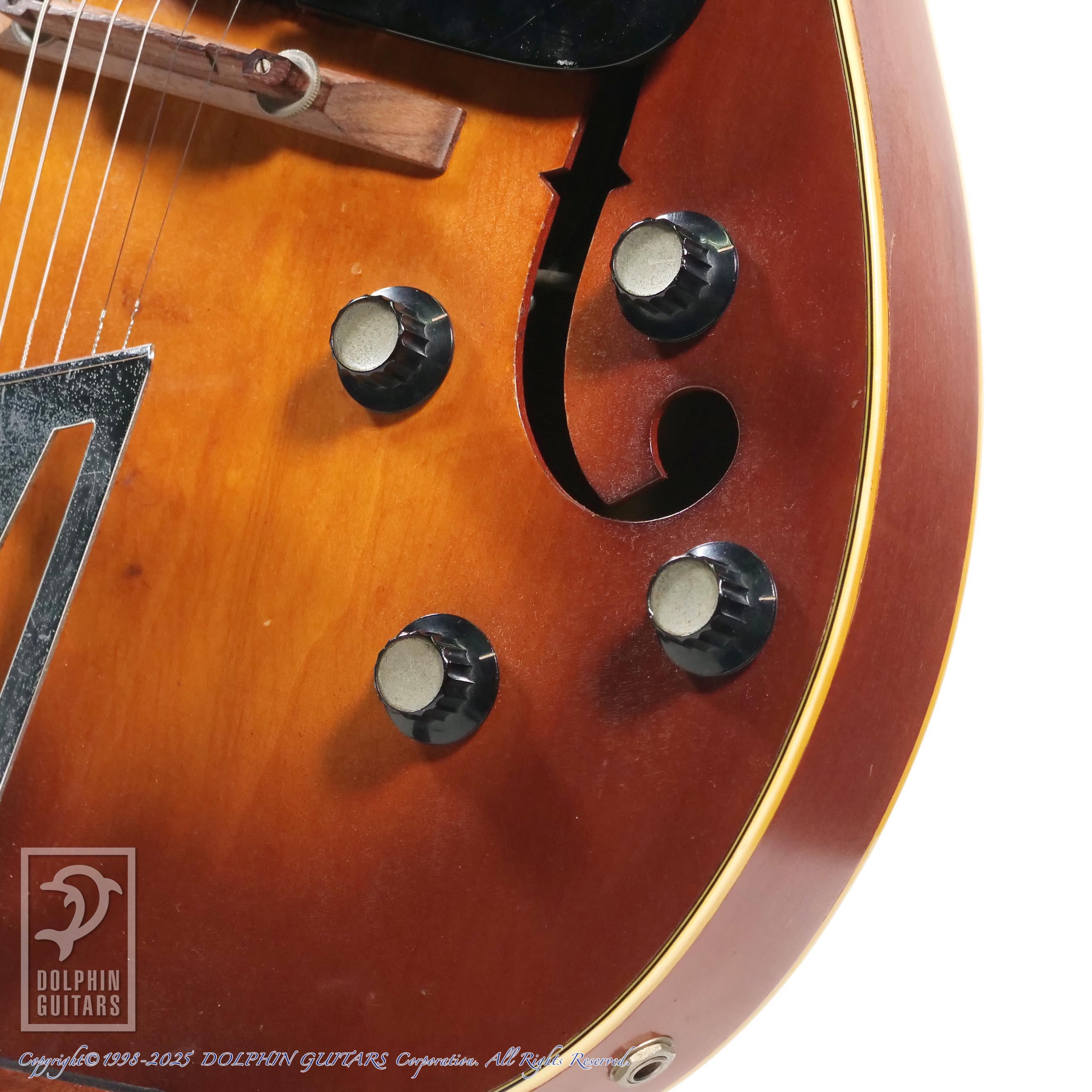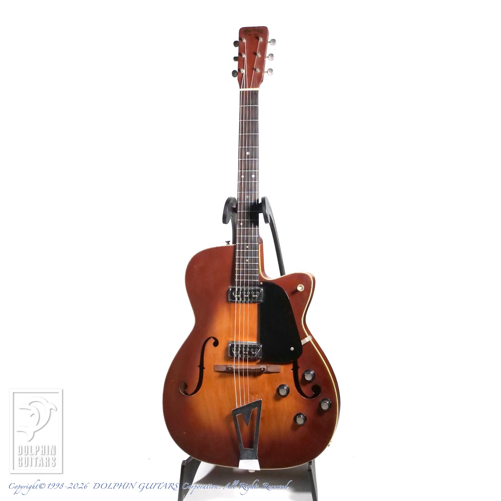本器はそのわずかな期間に製作された、シングル・カッタウェイ、デュアルモンド・ピックアップx2搭載、初年度1961年製のF-55のヴィンテージ。