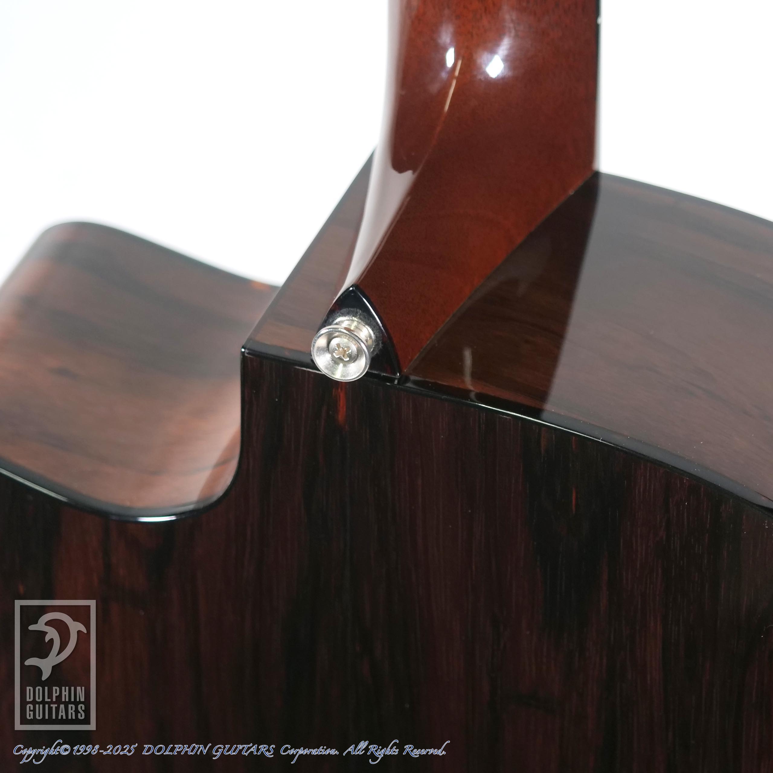 コンパクトなボディサイズにショートスケール+カッタウェイが織りなすプレイヤビリティは最高のフィーリング。また、ボトム部で約115mmのややディープボディにすることによる、深みのあるサウンドが生まれます。音圧や艶はアディロン+ハカランダという最高のマテリアルの魅力を存分に堪能できる一本です。