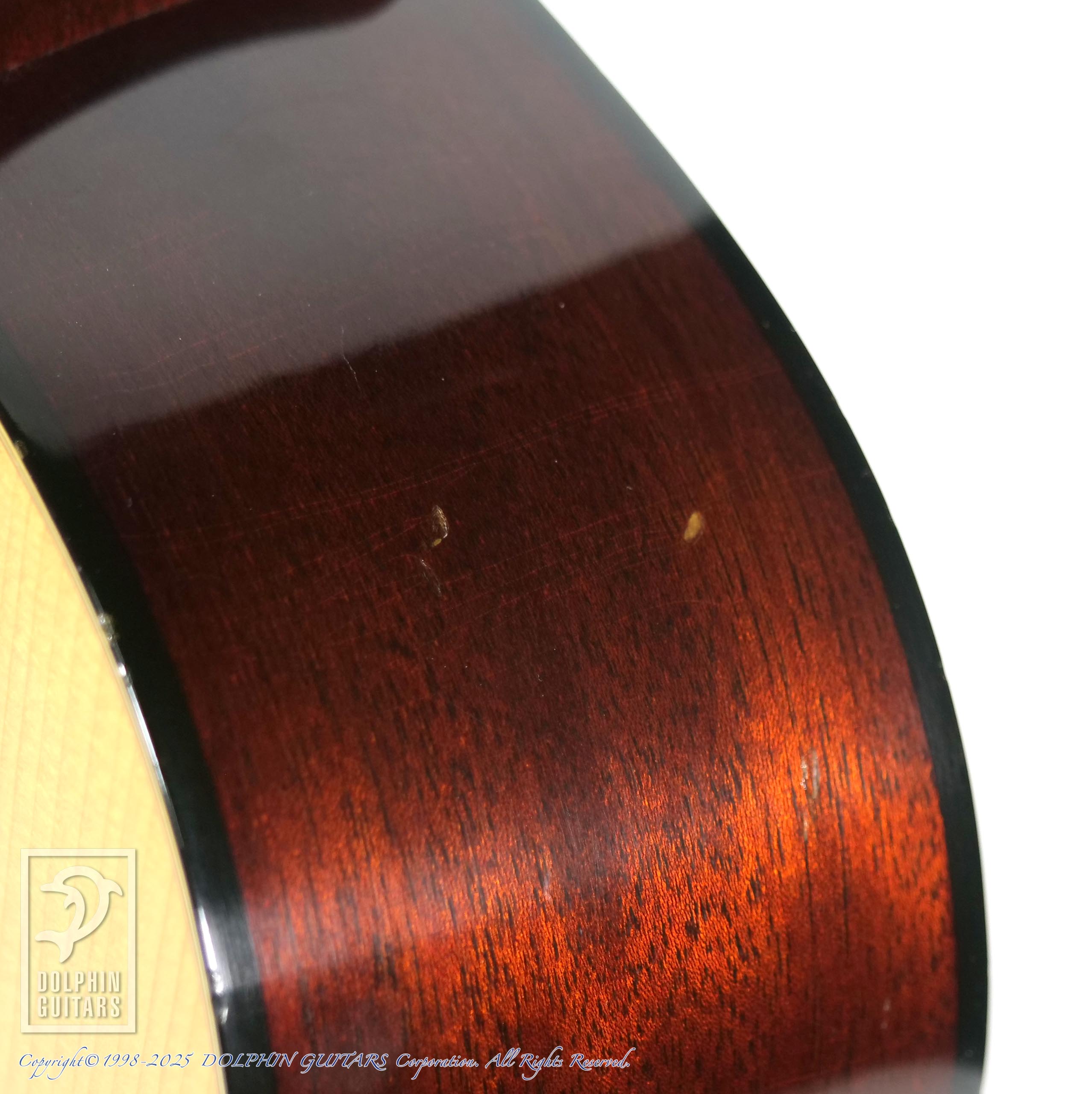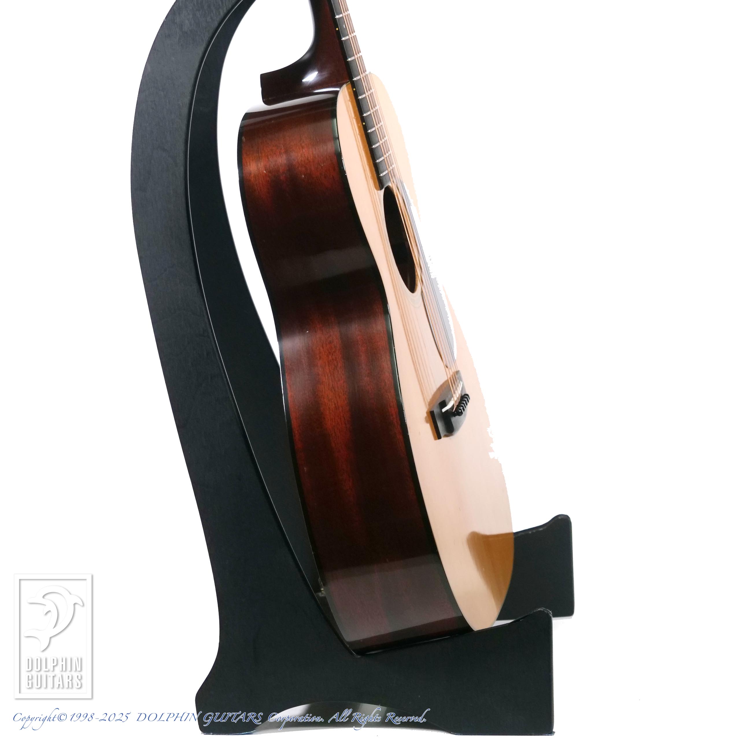 1930年代の名器を思わせる、乾いたウッディさと気品ある艶を兼ね備えています。00サイズらしい抱えやすさからは想像できないほど音像は立体的で、ふくよかな中低域に、パリッとした音抜けの良い高域が絶妙に調和。フィンガースタイルでは軽いタッチにも敏感に反応し、奥行きのある余韻が心地よく広がります。