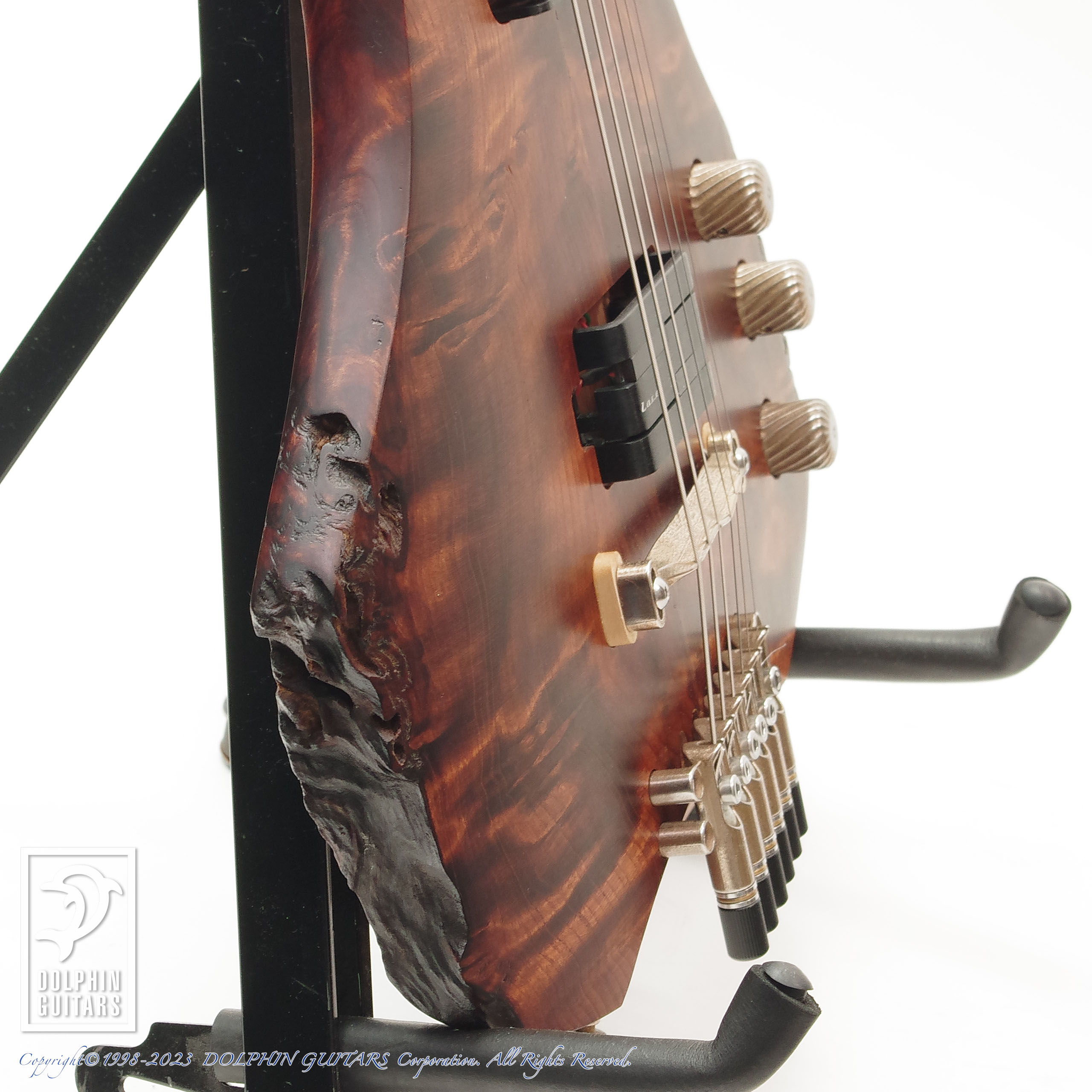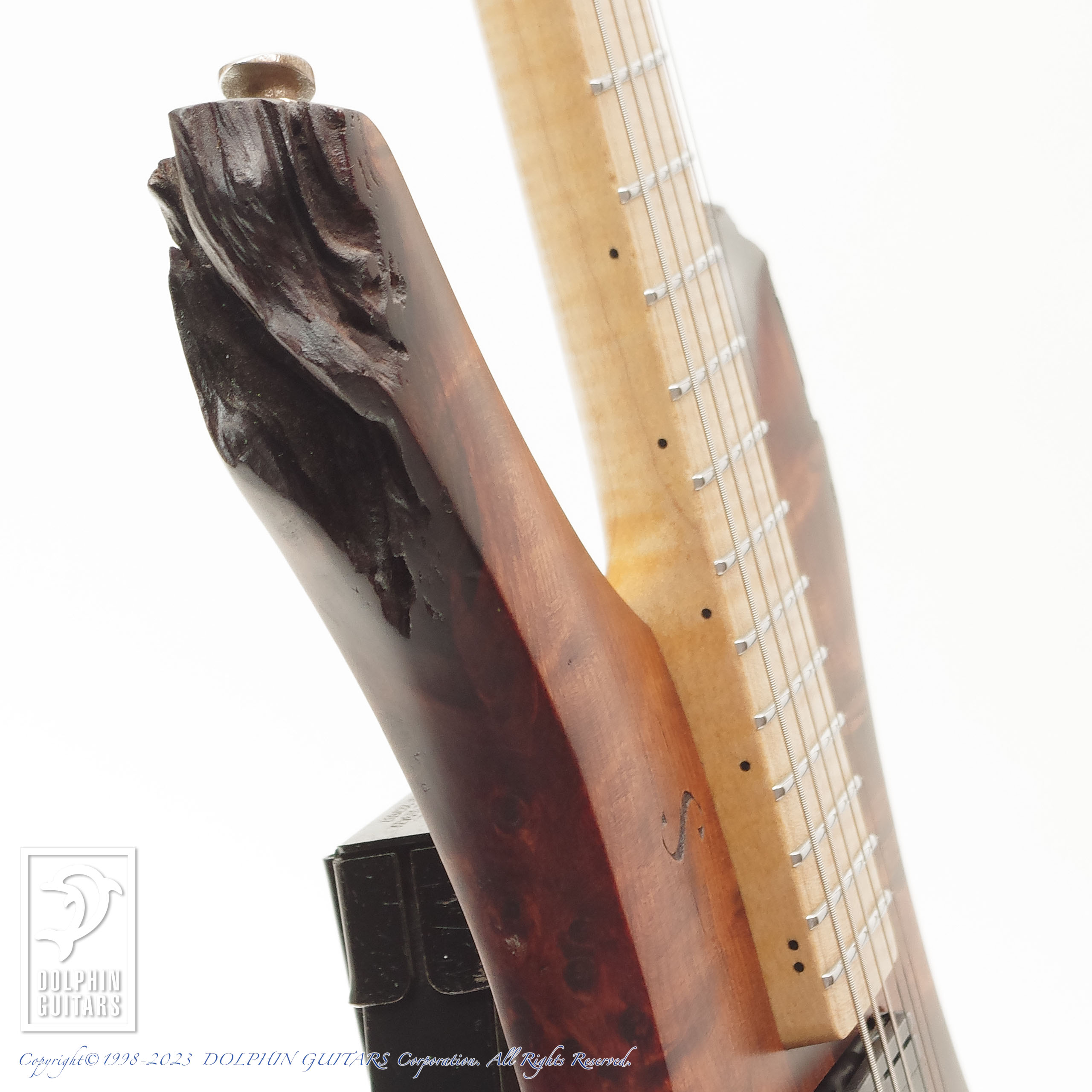 本器はカリフォルニア産のレッドウッドバールを使用したヘッドレスギター Bighorn 2023年製のUSED品。
