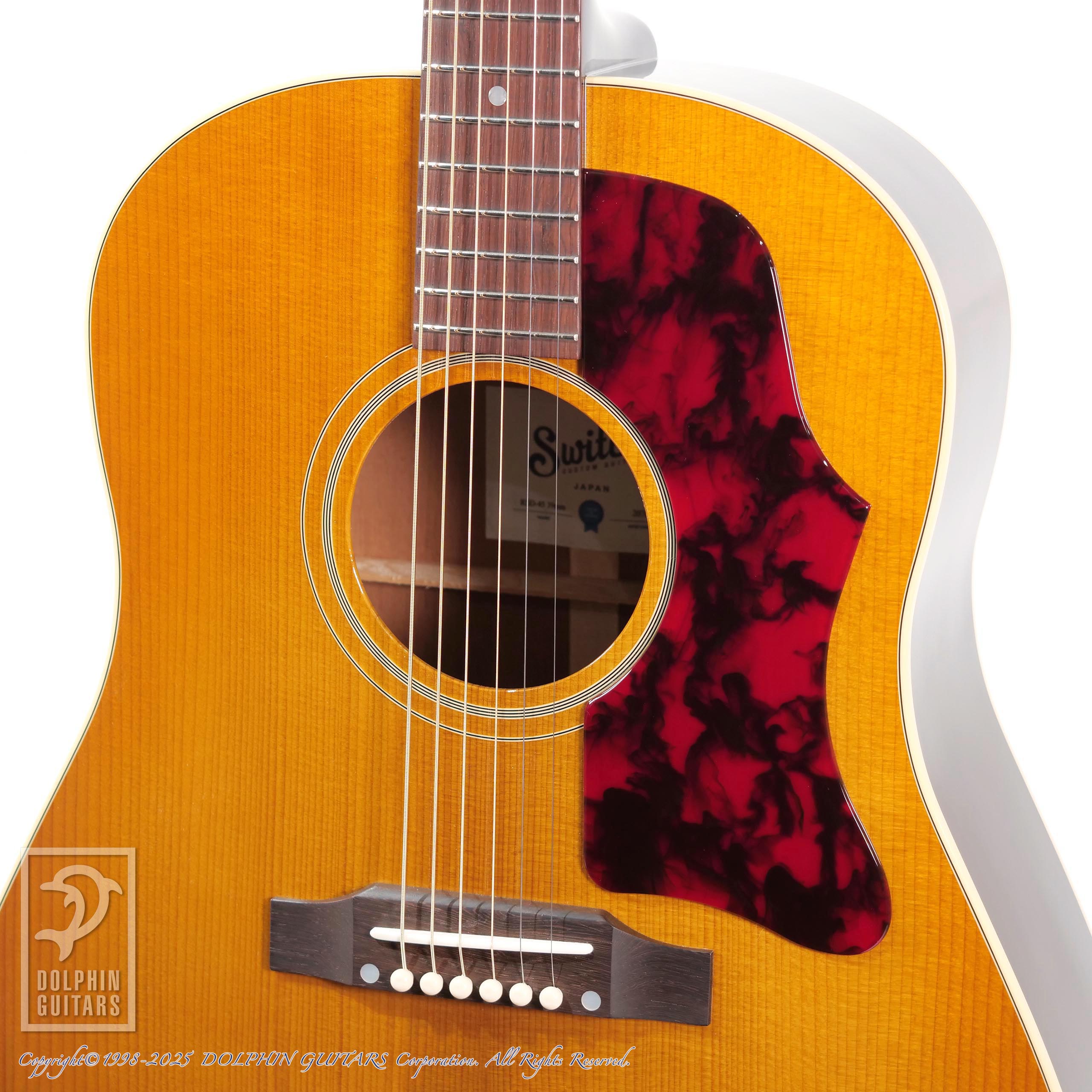 本器はヴィンテージシリーズ、50〜60年代のラウンドショルダーを現代風にブラッシュアップしたモデルRSD (Round shoulder Dreadnought)より、60年代後期の極細ネックを採用したRSD-45 39mm FCS。
