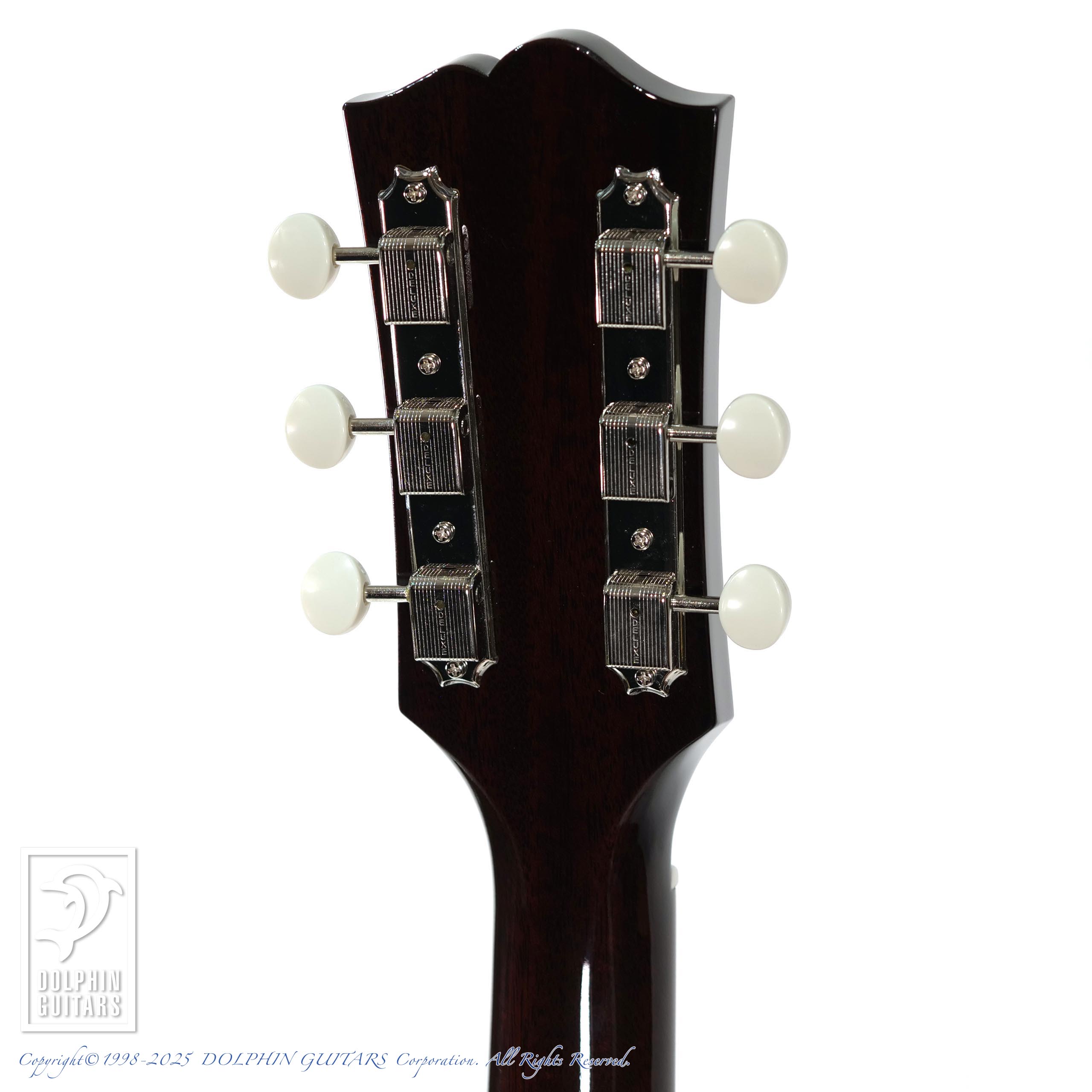 ヴィンテージギブソンでは39mmナローネックと言えばアジャスタブルサドルがセットの仕様ですが、ピエゾピックアップ需要の高まりや、重みのあるサウンドを求め、ノーマルブリッジにカスタムして弾くプレイヤーも多く存在します。そこで、隙間需要に敏感なSWITCHがリリースしたのが本器ナローネック+ノーマルサドルのRSD-45 39mm。こちらのカラーFCS=Faded Cherry Sunburstは60年代当時の、元々のチェリーバーストであったが、赤が褪色しやすかった塗料を使用していた頃のヴィンテージギターを再現した渋いニュアンスのフィニッシュ。