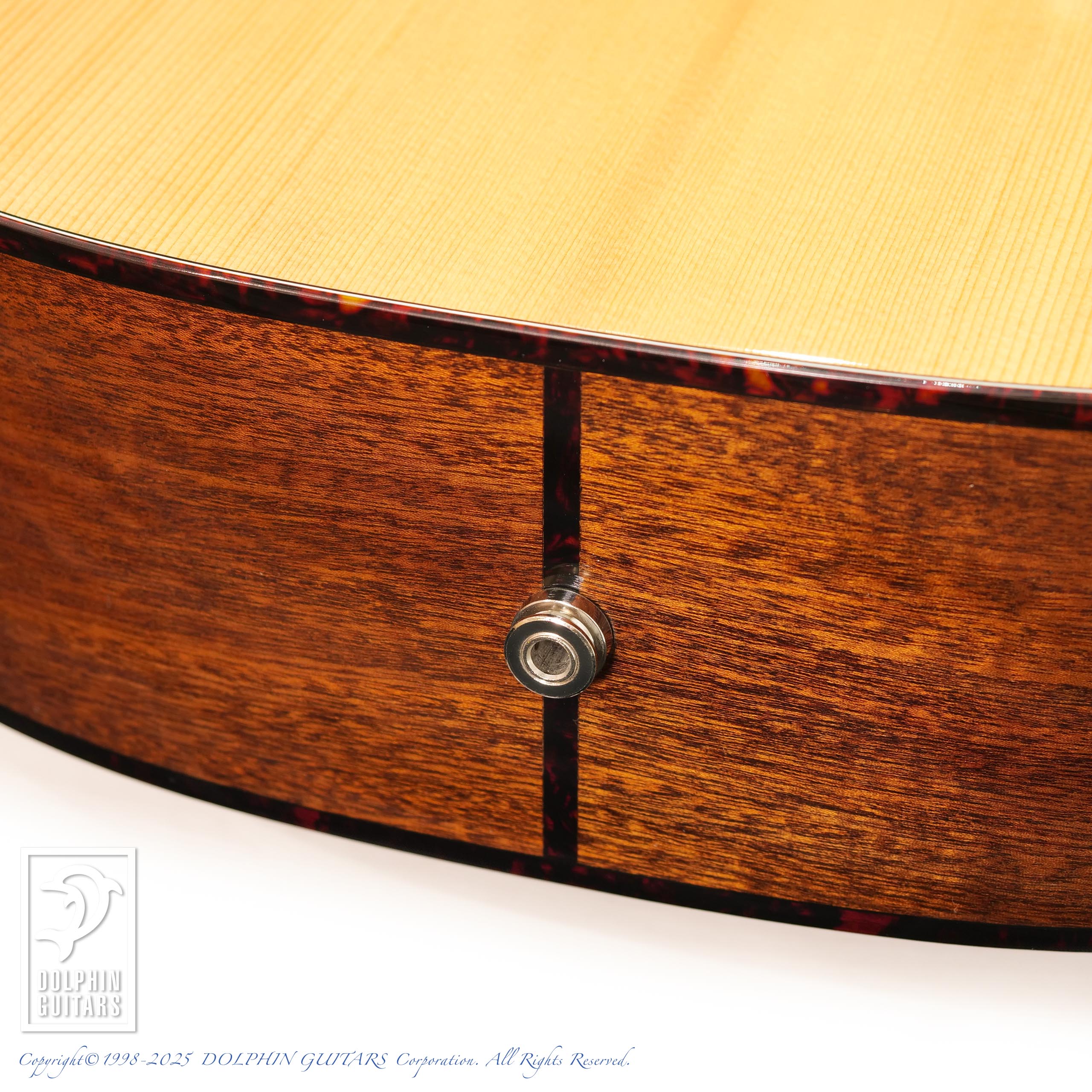 窯の中で木材を低温で焼くことで湿気を取り除き、新品でありながらヴィンテージ品のような経年変化を感じさせる、独自のサーモキュア処理を施した単板のシトカスプルースを採用しています。また、ボジョアギターズのメゾットによる、独自のフィニッシュ「トゥルートーンフィニッシュ」はギターの音色を損ねることのないように構成されています。
