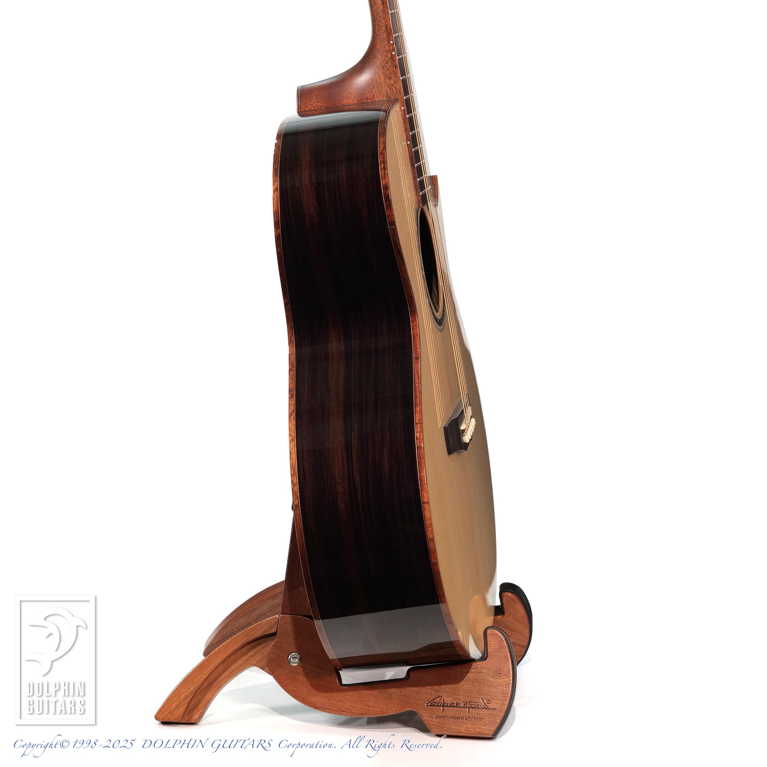 セミジャンボサイズは、通常のドレッドノートやジャンボサイズよりもわずかに薄いボディサイズが採用されていますが、そのスピード感がありながらも迫力が損なわれないサウンドは、このボディサイズならではの響き。重量感のある低音とタイトさが、絶妙なバランスで混ざり合うのもSJサイズならでは。