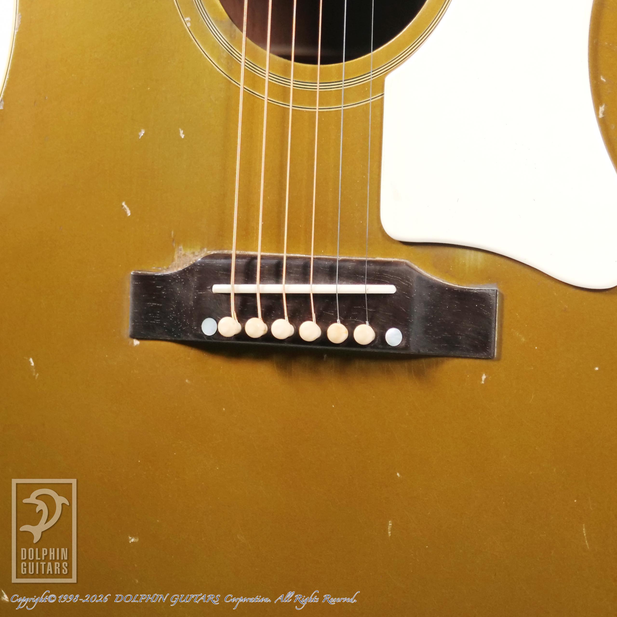 アコースティックギターではほぼ見かけることのないゴールドトップ。ギブソンスタイルの本機には不思議と抵抗なく受け入れられます。レスポールを象徴するゴールドトップは時にインパクトを与え、時に渋さを演出する魅惑のフィニッシュです。ヴィンテージレスポール同様、ブラスパウダーを用いたゴールドは、薄らとグリーンがかっており、より渋く映えます。