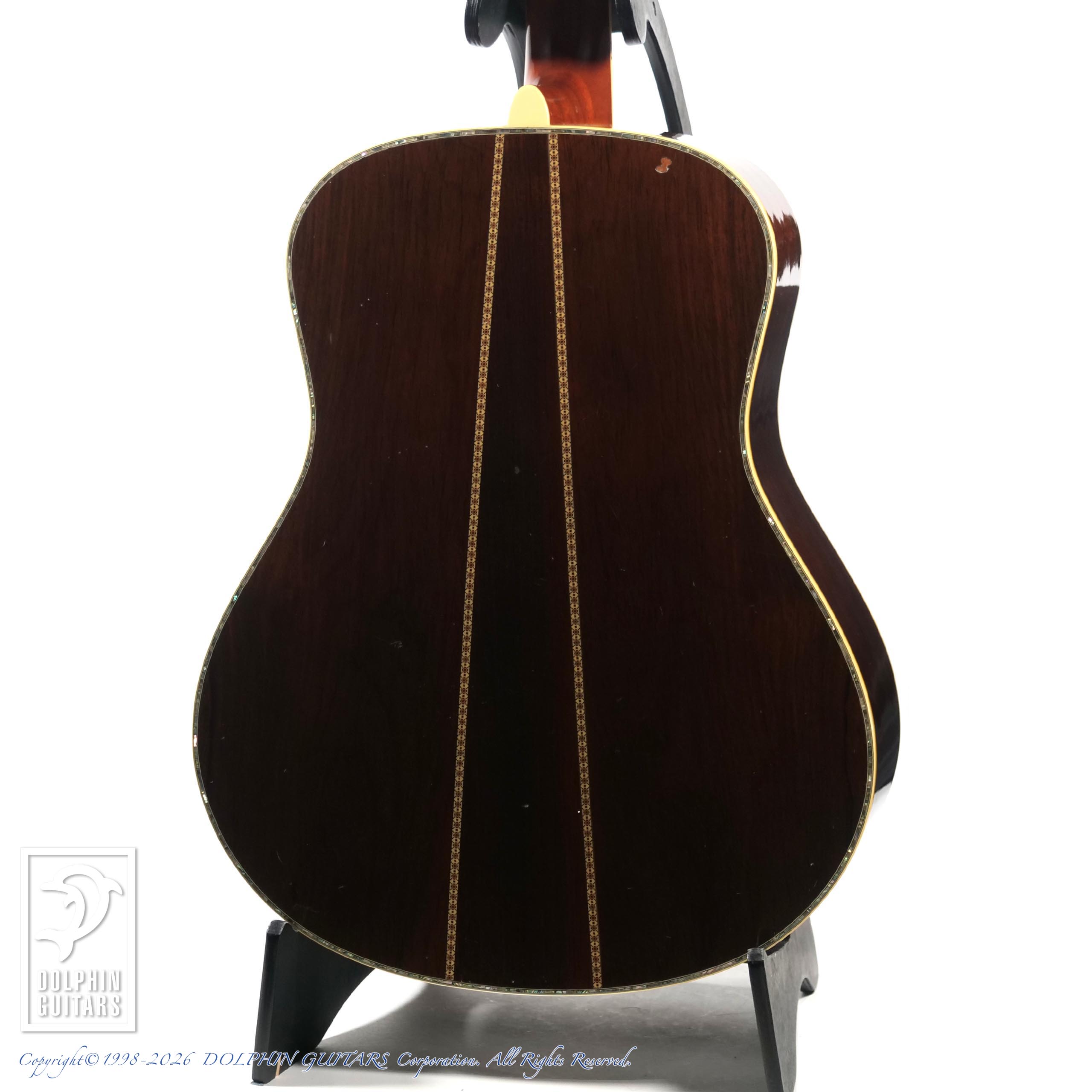 3ピース構造のハカランダ単板にエゾ松の単板トップ、贅沢なマテリアル構成に、ヘッドストックには、当時の最上位機種であったLL-55D Customと同様の「L」インレイを配置し、トップにはアバロンパールによるパーフリングとロゼッタを装飾。華美になりすぎない、品格のある高級感を漂わせた佇まいが魅力です。