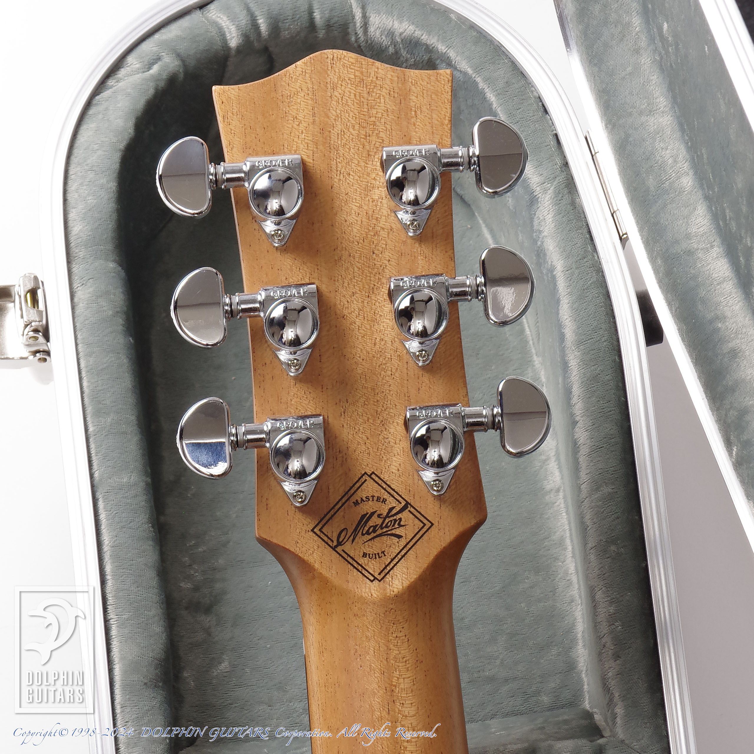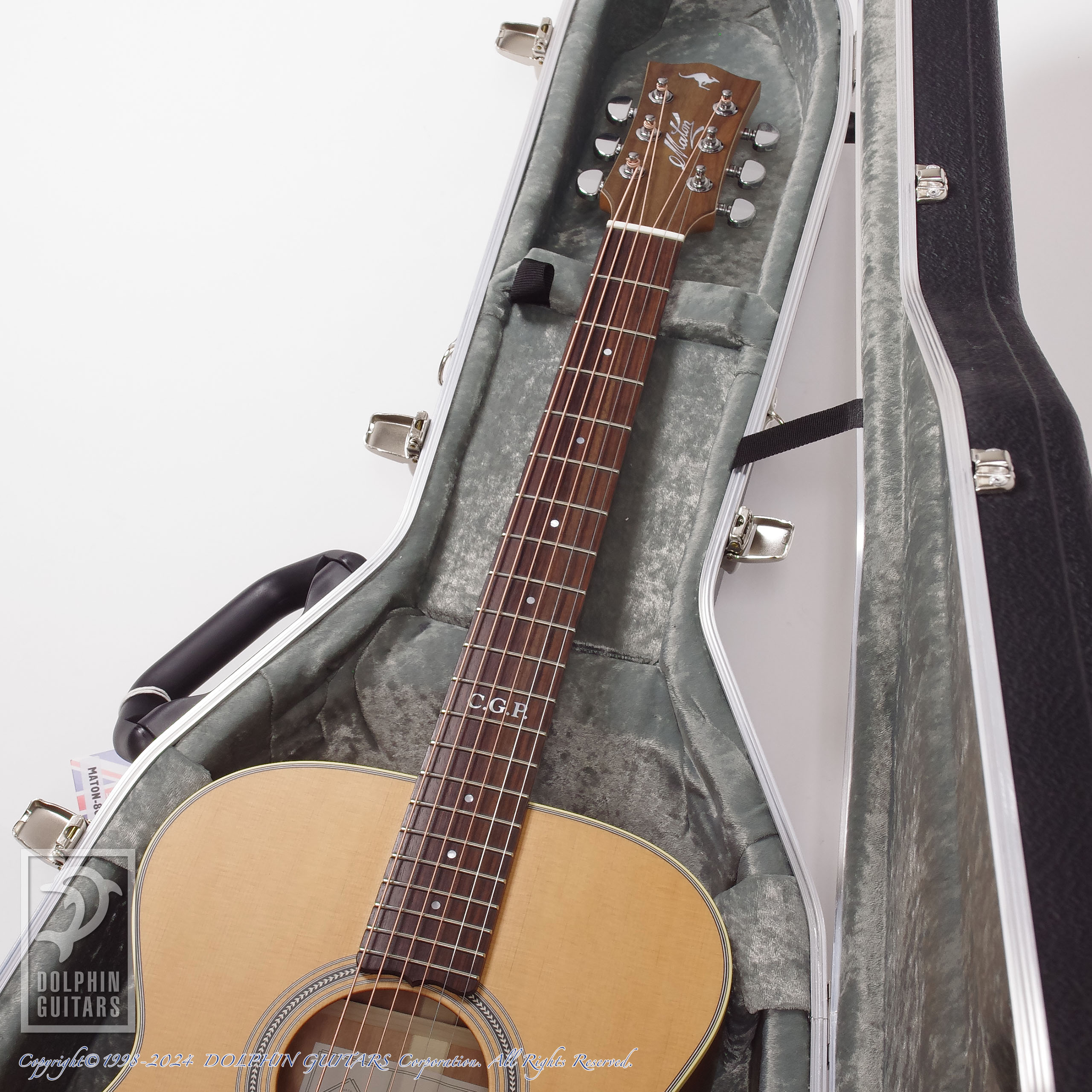 ヘッドプレートにはウォルナットを配し、マザー・オブ・パールの"Maton"ロゴと、上部にトミーモデルのトレードマークであるカンガルーマーク、12Fにはマスタービルト専用"C.G.P"インレイが施されています。