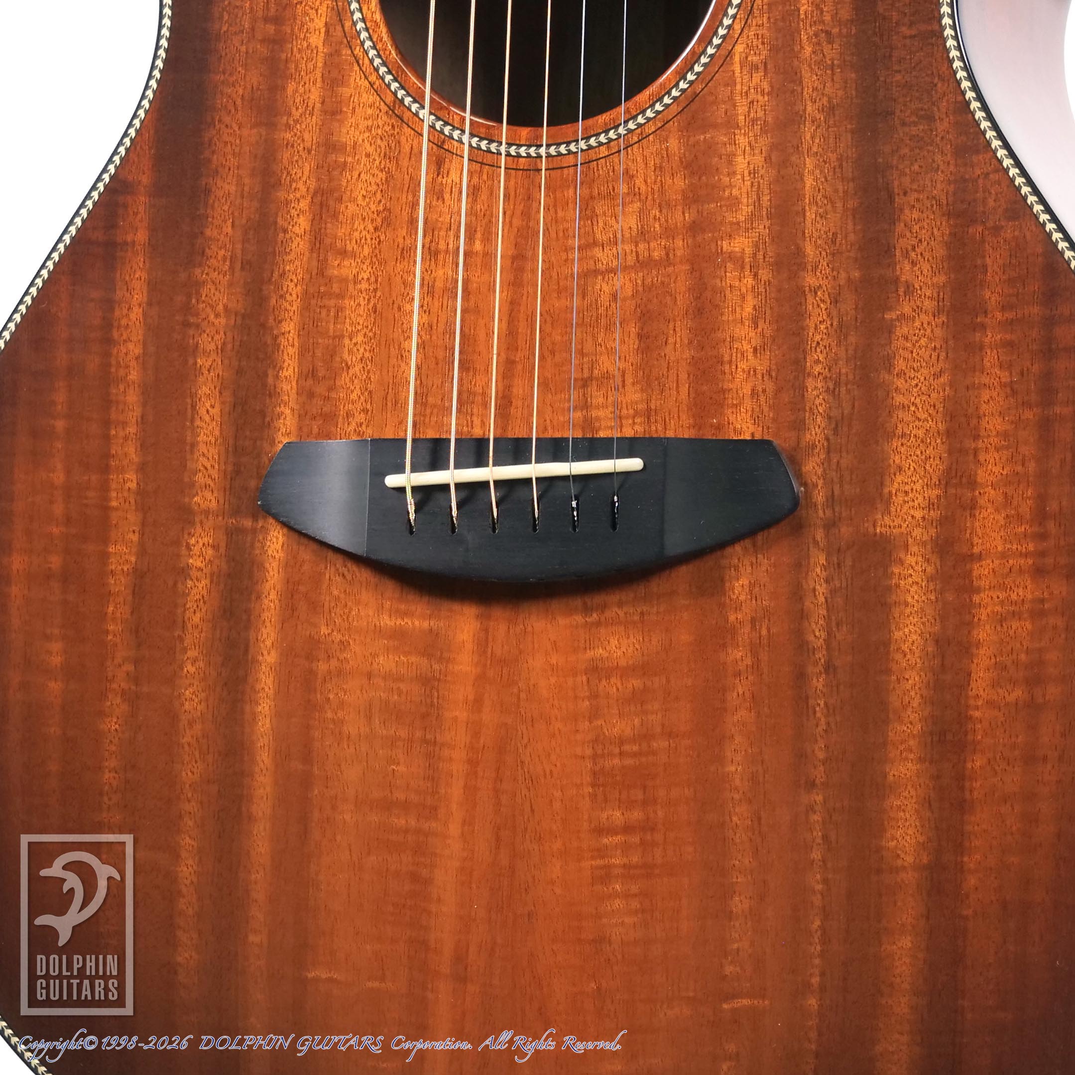 USAメイドのOregonシリーズより、ブリードラブを象徴するマートルウッドをボディ全面に使用したエレアコモデルとなっており、マートルウッドならではの、ローズウッドのレンジ感、マホガニーの乾いたトーン、メイプルの甘さと厚みを併せ持つサウンドが特徴です。単音では太く甘く、ストロークでは張りのあるクリアな響きを奏で、歌モノからソロギターまで幅広く対応します。