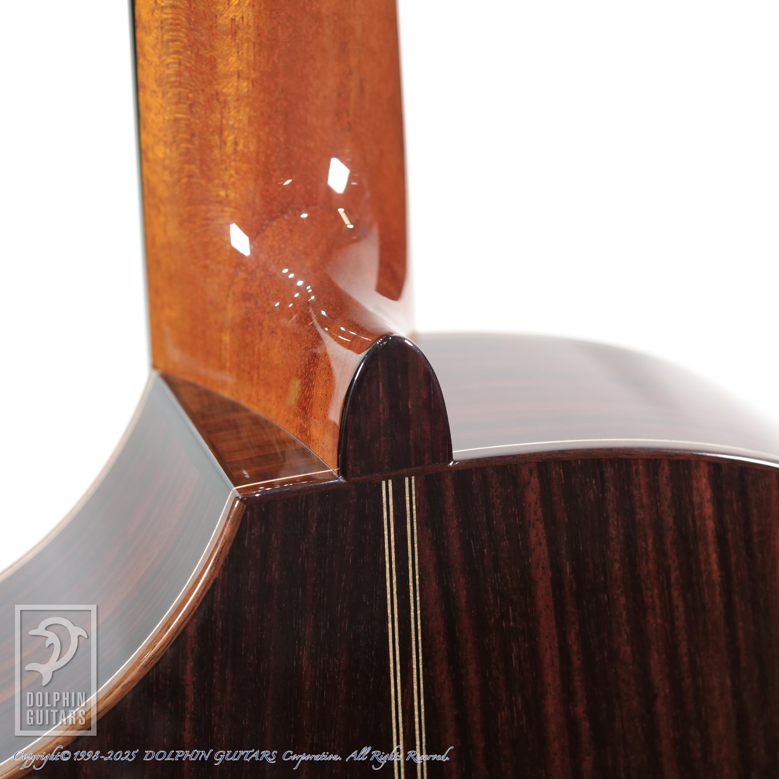 トップのシダーはスタッフが久留米の工房を尋ね、中でも色の濃いダークでビターなチョコレートカラーを厳選したものを採用しました。シダー&ローズの甘くダイナミックなサウンドも心地良いギターです。