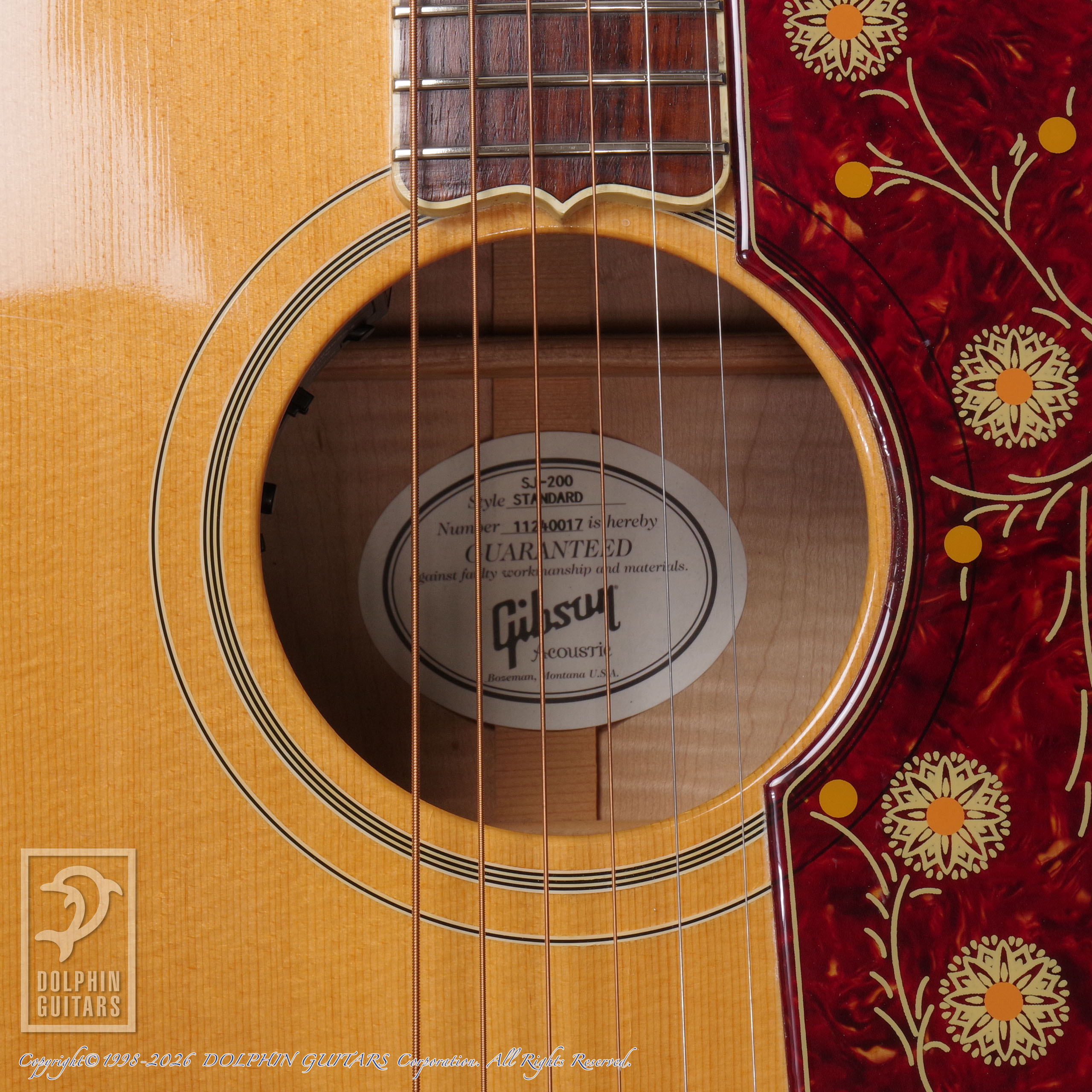 ど迫力の低音を響かせる個体で、ルックス通り音域の広いサウンドが魅力です。余分な硬さもなく、テンション感も程よく柔らかく、サウンド重視でSJ-200をお探しの方にもお勧めです。