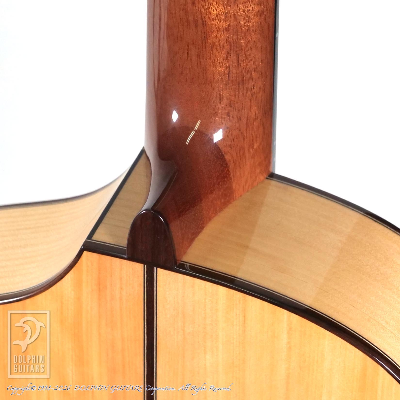 ネックアングルにもこだわり、低い弦高でもテンション感を維持し、クリアでキレの有るサウンドを生み出します。コンパクトボディならではのレスポンスの良さが特徴のモデルですが、総単板のシープレスを使用することにより、より良い反応と音量感も楽しんでいただけると同時に、軽やかな弾き心地、サウンドはポップスやジャズ、ボッサなど、幅広く活躍できると思います。