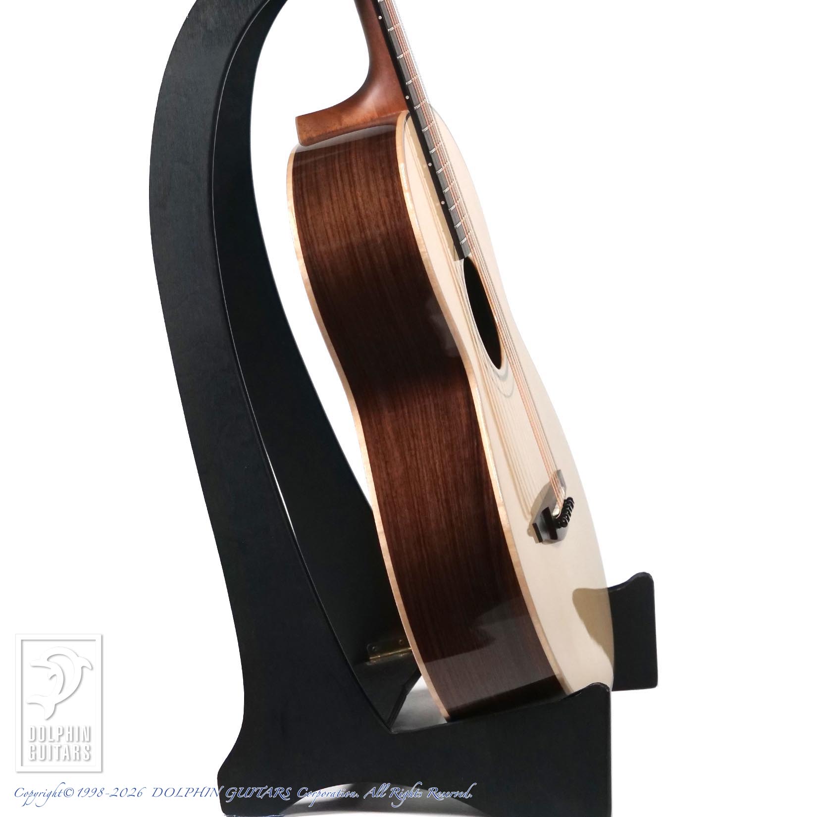 力強さと繊細さを兼ね備えたサウンドは、ヤイリならではの音響バランスが際立ちます。12フレットジョイント特有の、ふくよかで奥行きのある鳴りが低域に深みを与え、トップの反応の良さが中低域の芯を形成。澄んだ倍音が自然に溶け合い、ソロでもアンサンブルでも豊かな存在感を放ちます。