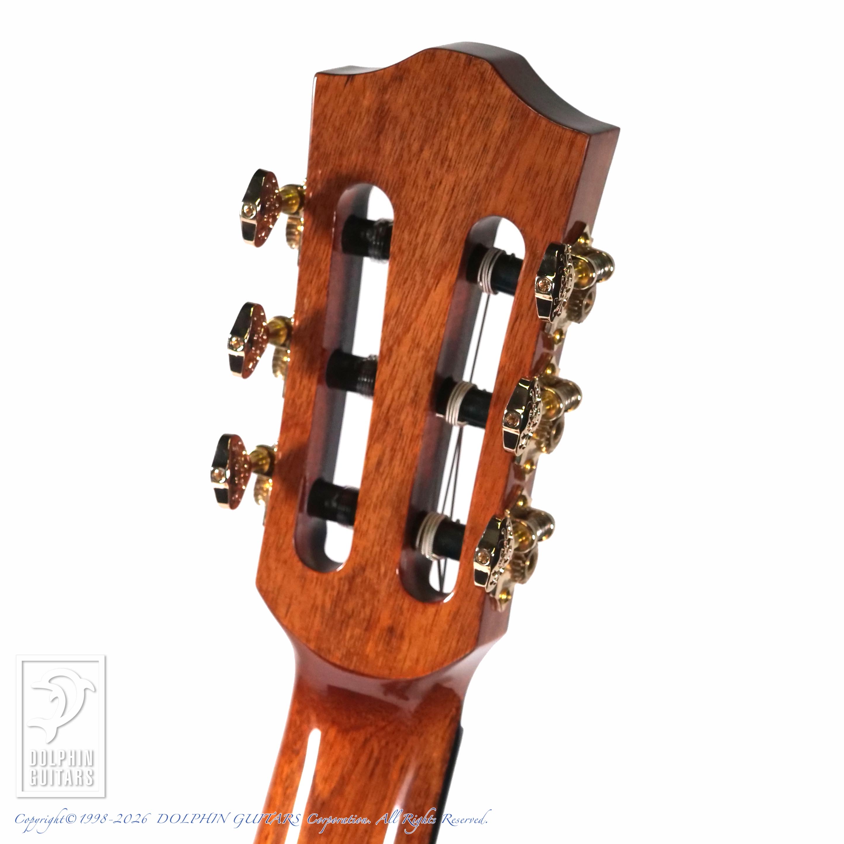 ネック幅は48mm、しっかりと指板Rがついており、鉄弦やエレキ奏者にも直ぐに馴染める弾き心地となっております。
