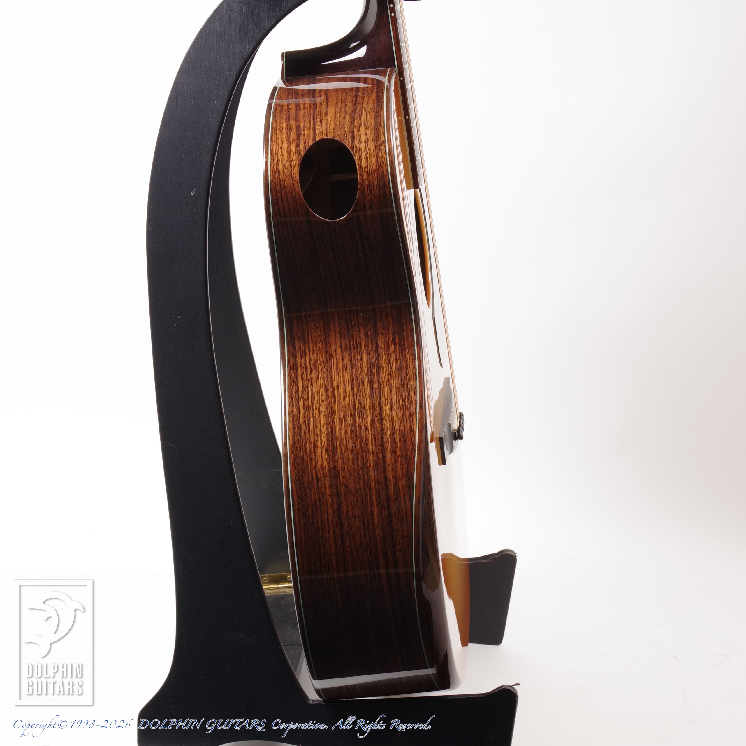 サイドサウンドホールはメインのサウンドホールから放たれるステレオ感も独特な響きを感じさせ、弾き手自身へのモニターとしても効果絶大。抱えた際の収まりも良く、ボディを一回りほど小さく感じさせるアームレスト仕様もグランドオーディトリウムボディと相性抜群です。