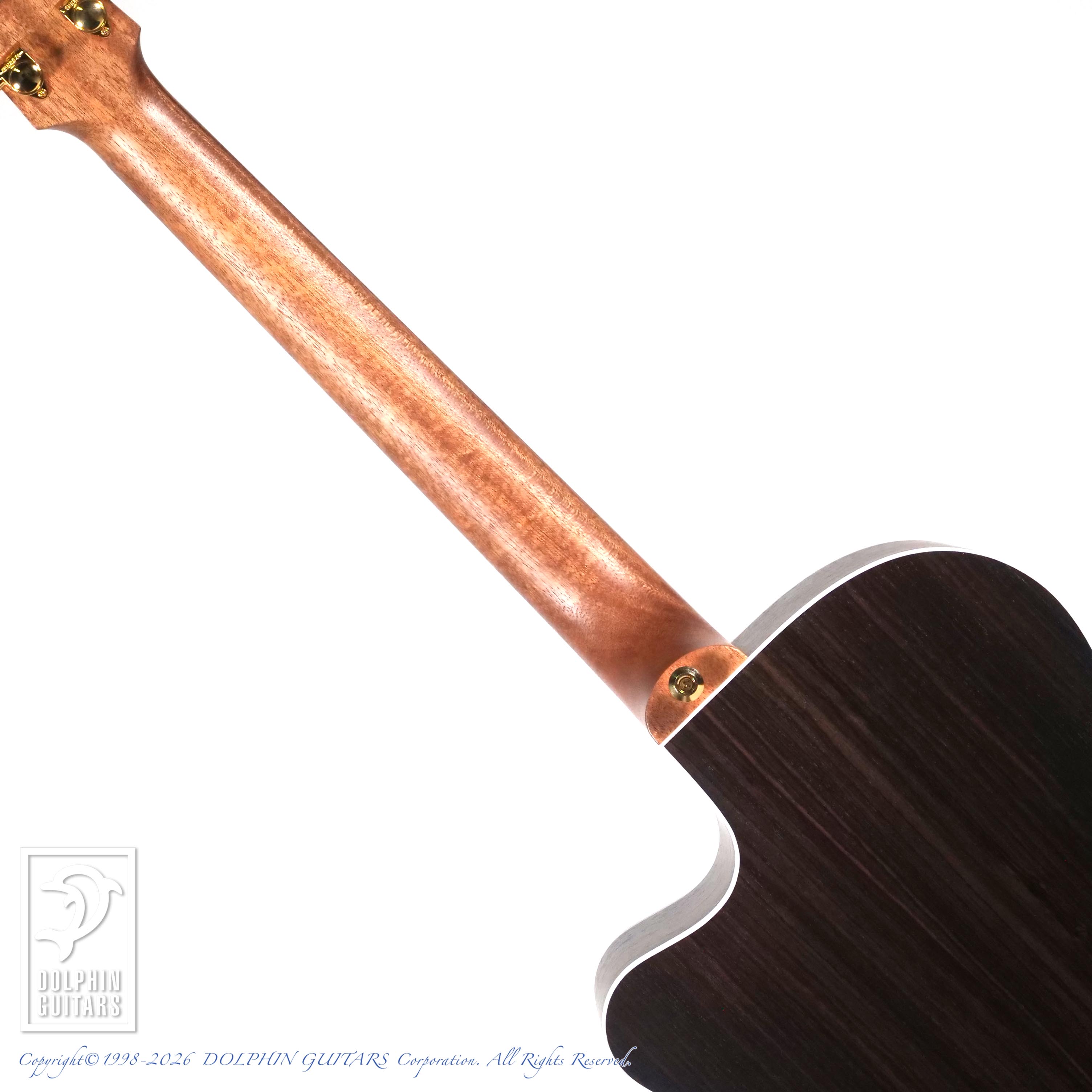 本モデルはスプルース&ローズウッド仕様の808カッタウェイ。抱えやすさと音の厚みを両立し、さらにカッタウェイも備えるなど、ファンに待ち望まれていた機種と言えるでしょう。