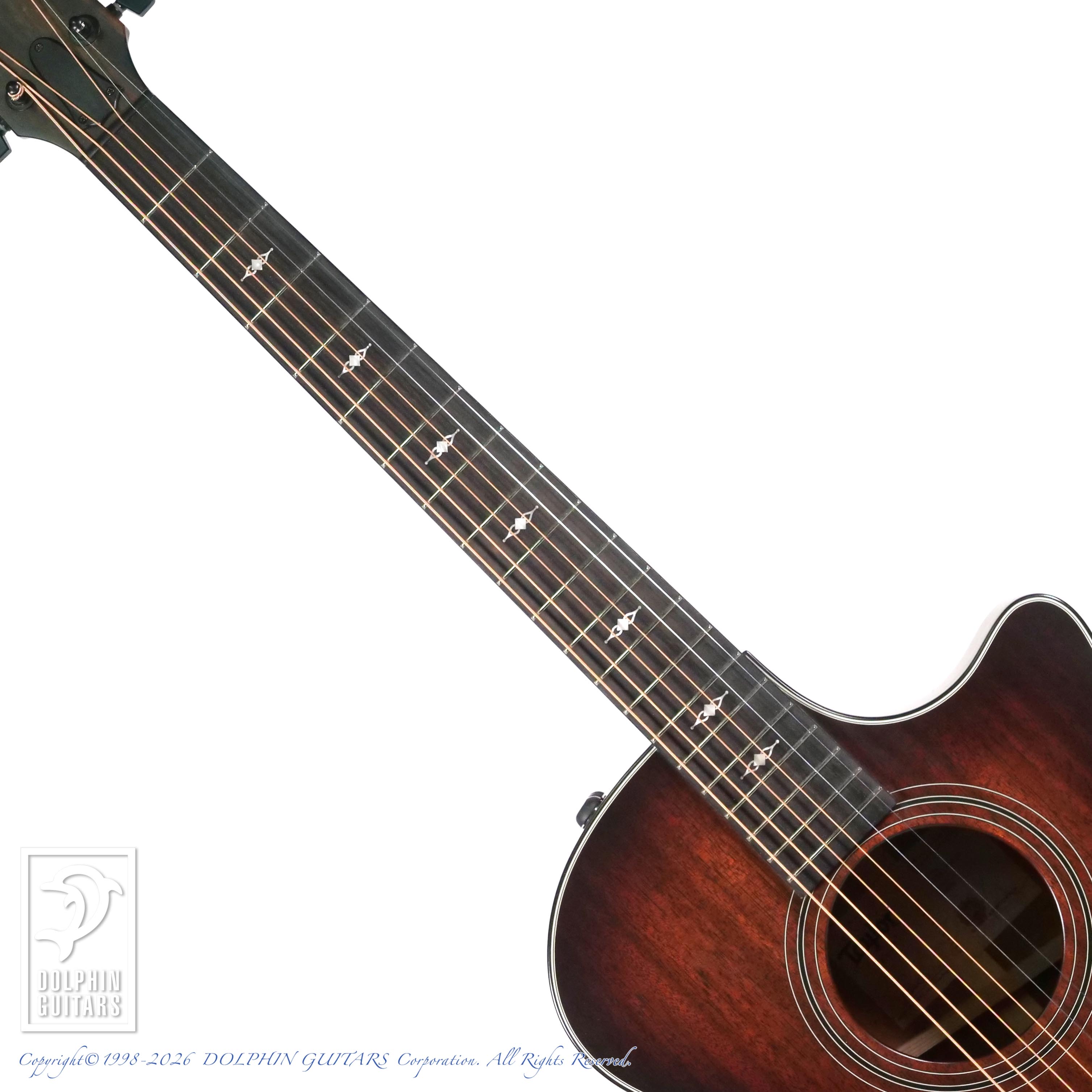 サテン仕上げとマホガニートップの生み出す、軽く伸びやかなサウンドはコードストロークや歌モノのアルペジオに相性抜群です。また、独自のブレイシング構造であるV-Classブレーシングを採用することで、より豊かな音量とサスティーンのあるサウンドを聞かせます。加えて、一般的なOMサイズよりも一回り大きいボディであること、サイド&バック材のタスマニアンブラックウッドの持つ音響特性もうまく作用し、軽やかでありながらもダイナミックかつ深みのあるサウンドに驚かされることでしょう。