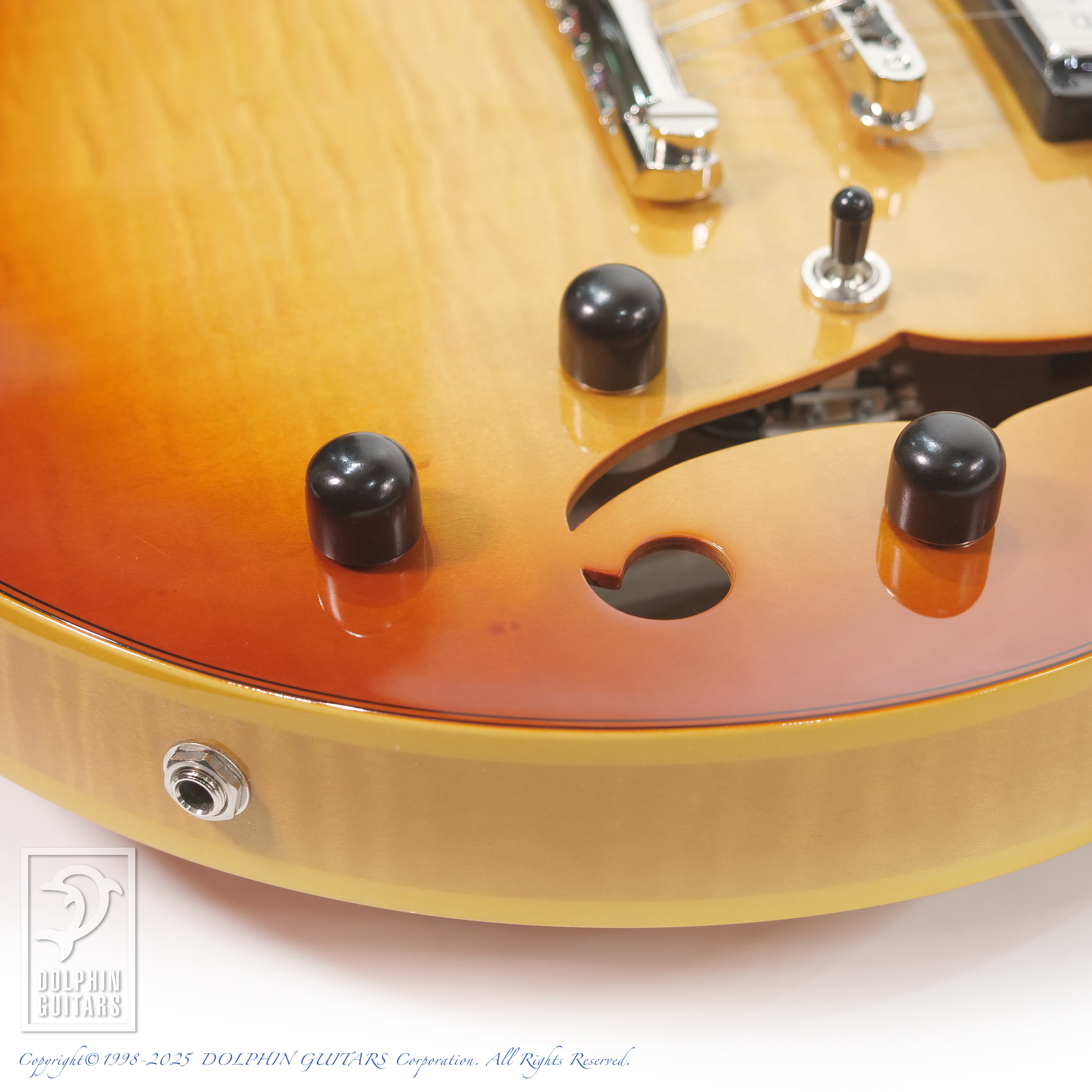 近年、人気が高まっている小ぶりなセミアコ。スタイリッシュにキメたい、どの世代のギタリストにも一度は試していただきたいオススメの一本。鮮やかなティーバーストカラーはいかが?