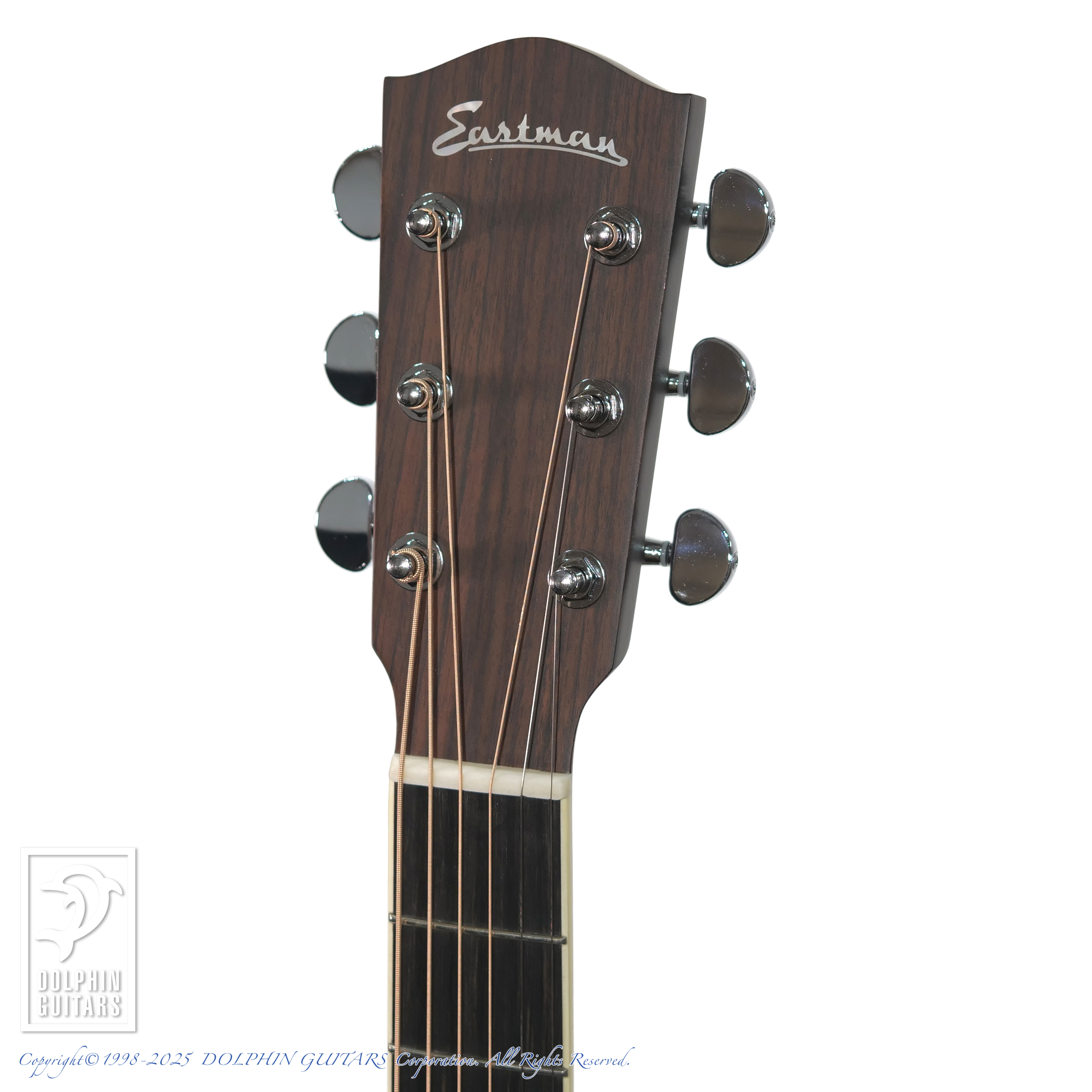 スプルース&ローズウッドの王道の組み合わせから生まれるサウンドは、音量はもちろんのこと、レンジもありながらクリアで爽やかな響き。イーストマンの妥協のないサウンドクオリティに驚かされます。また、当社が傘下に収めるハイエンドブランドであるボジョアギターズのメゾットによる、独自のフィニッシュ「トゥルートーンフィニッシュ」はギターの音色を損ねることのないように構成されています。