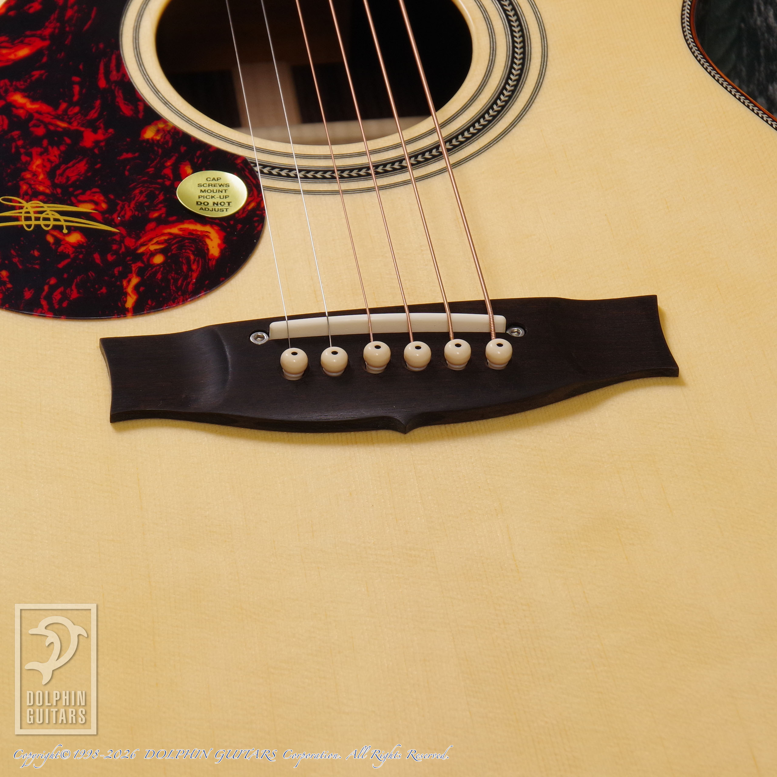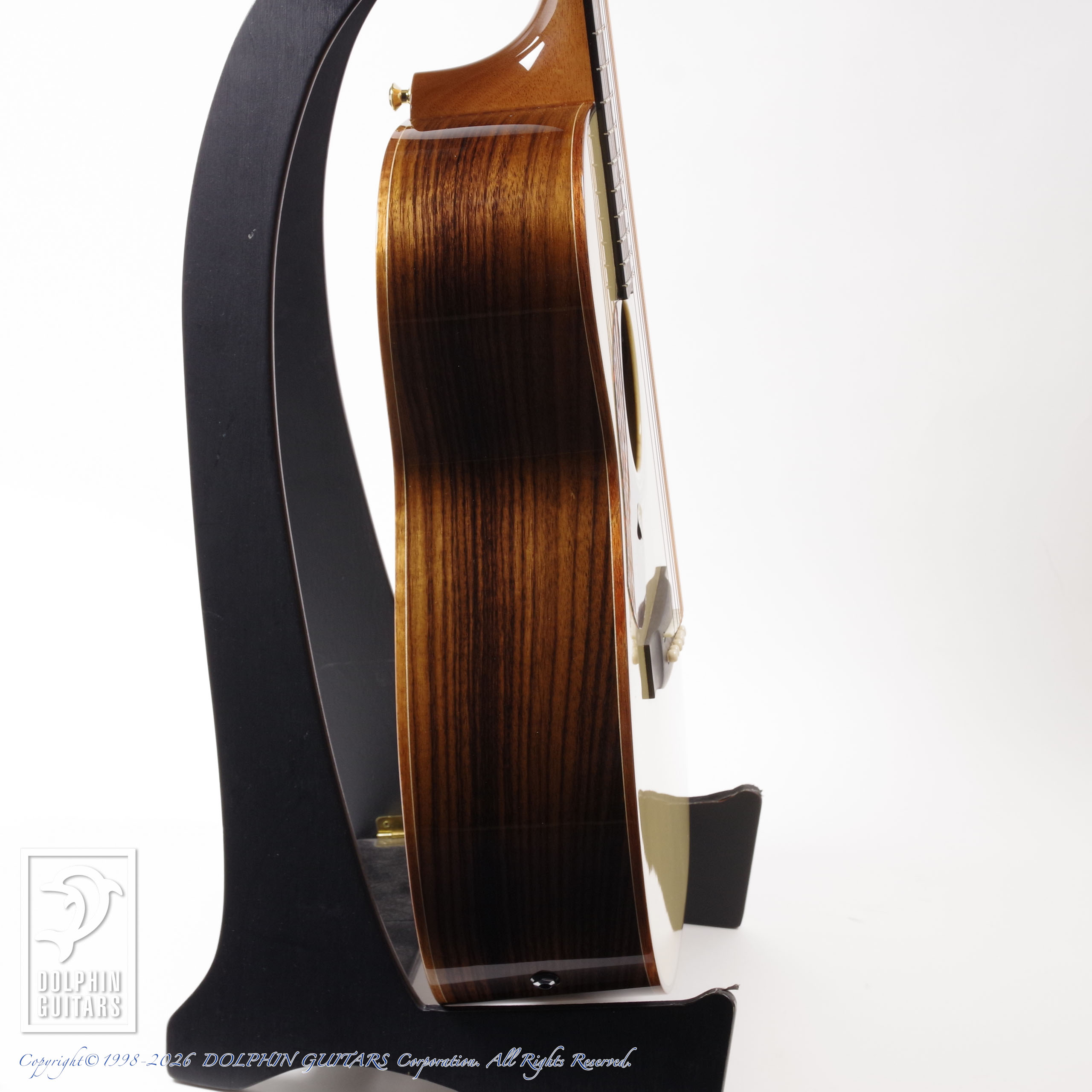 ボディ幅は000と00サイズの中間でありながら、ディープボディである為、抱え易い小柄でありながらも豊かなベース音を生み出し、極限まで高められたセットアップ、ローポジションからハイ・ポジションまで、指板に吸い付く様な弾き心地がテクニカルなプレイをサポートします。