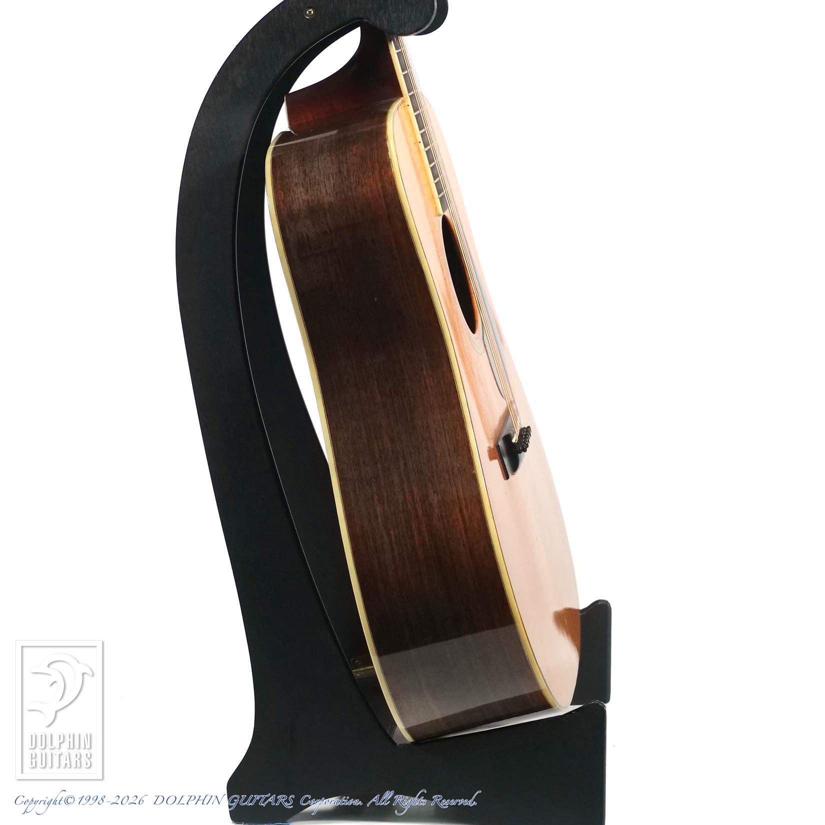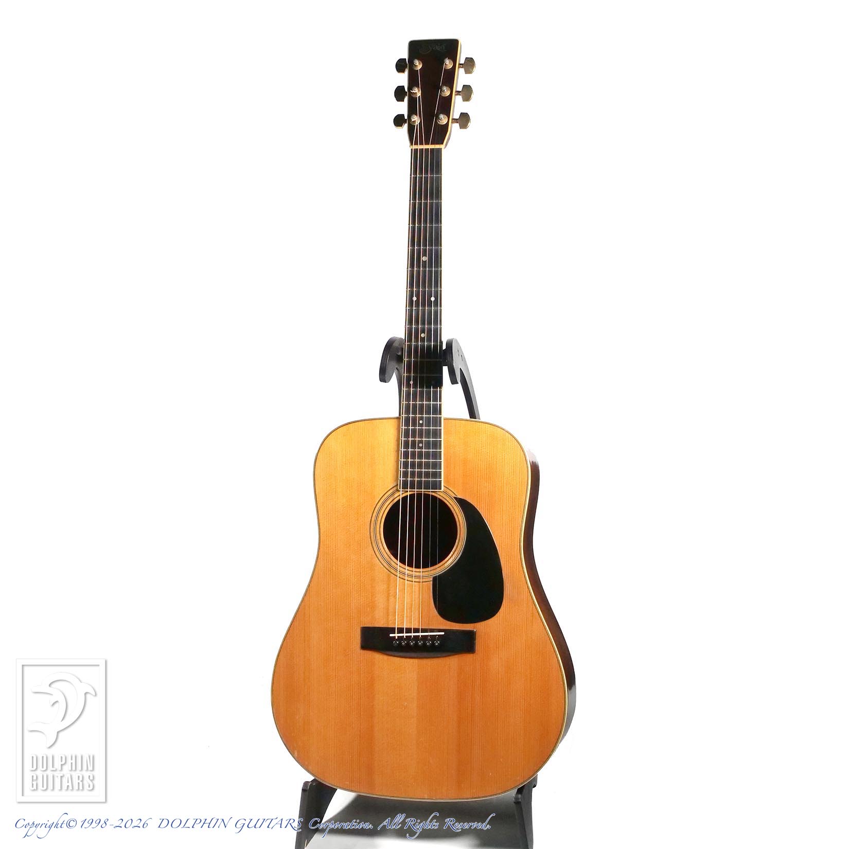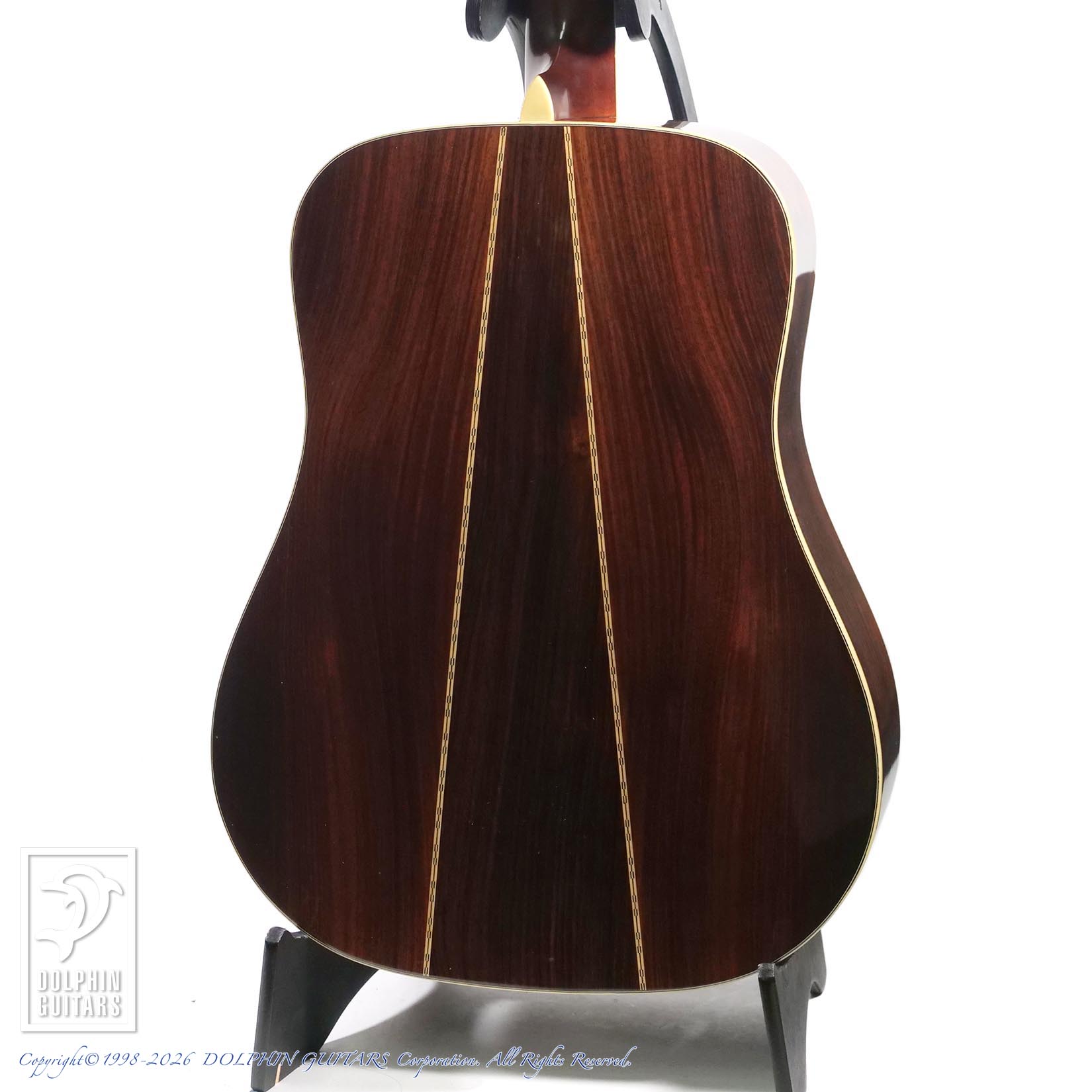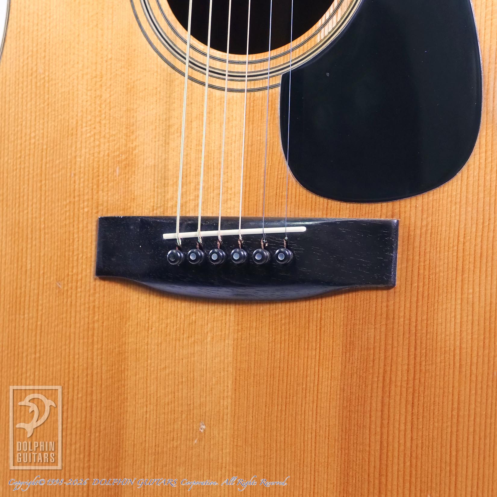 国内メーカー各社がこぞってアメリカ製アコースティックギターの研究・再現に力を注ぎ、材の選定からブレーシング構造、装飾に至るまで本家を意識したモデルが数多く生み出されました。本器もそうした時代背景の中で誕生した一本で、3ピースバックは35を思わせます。ドレッドノートらしい力強い低音と伸びやかな高音を備えた、当時の国産ギターの高い製作技術を感じさせるモデルです。
