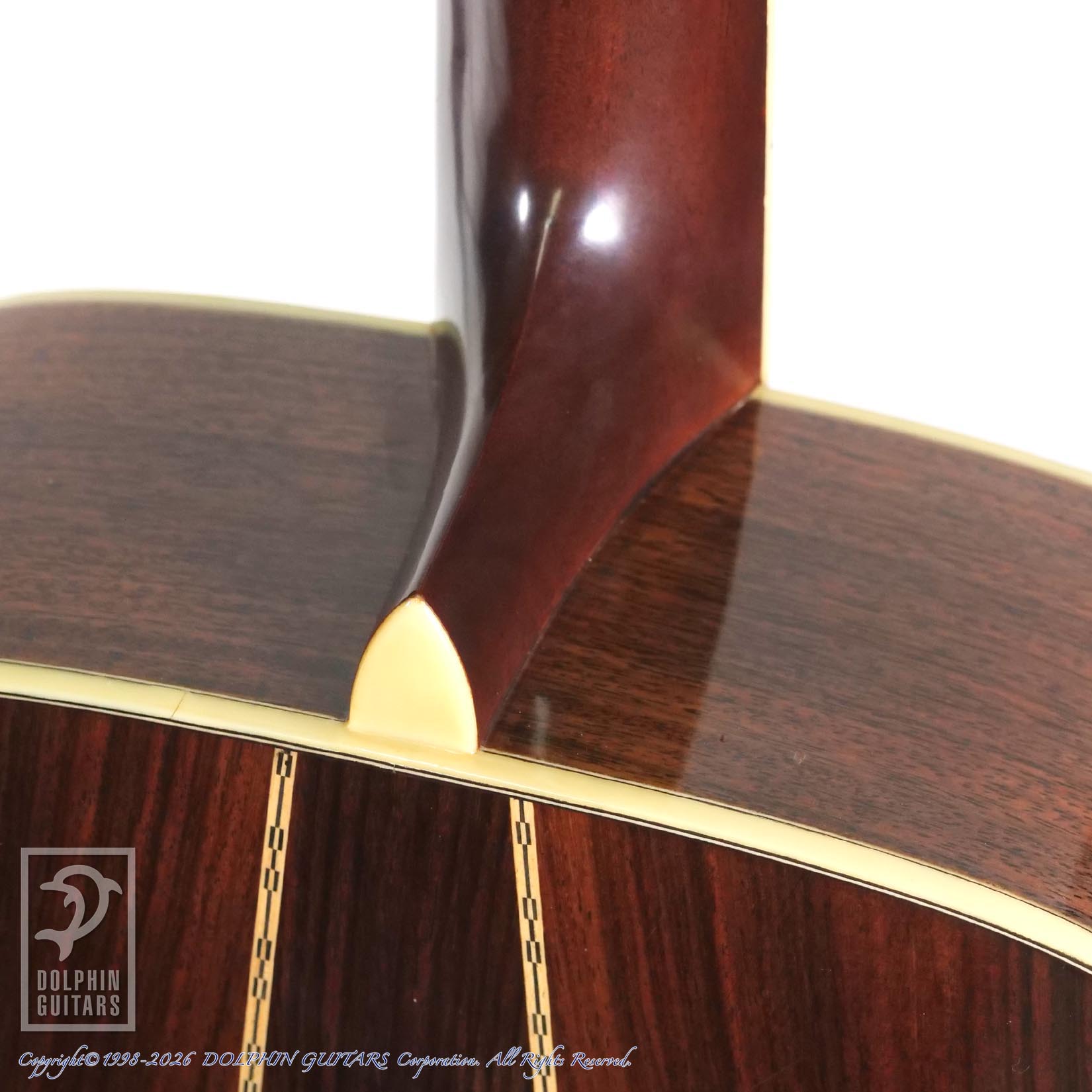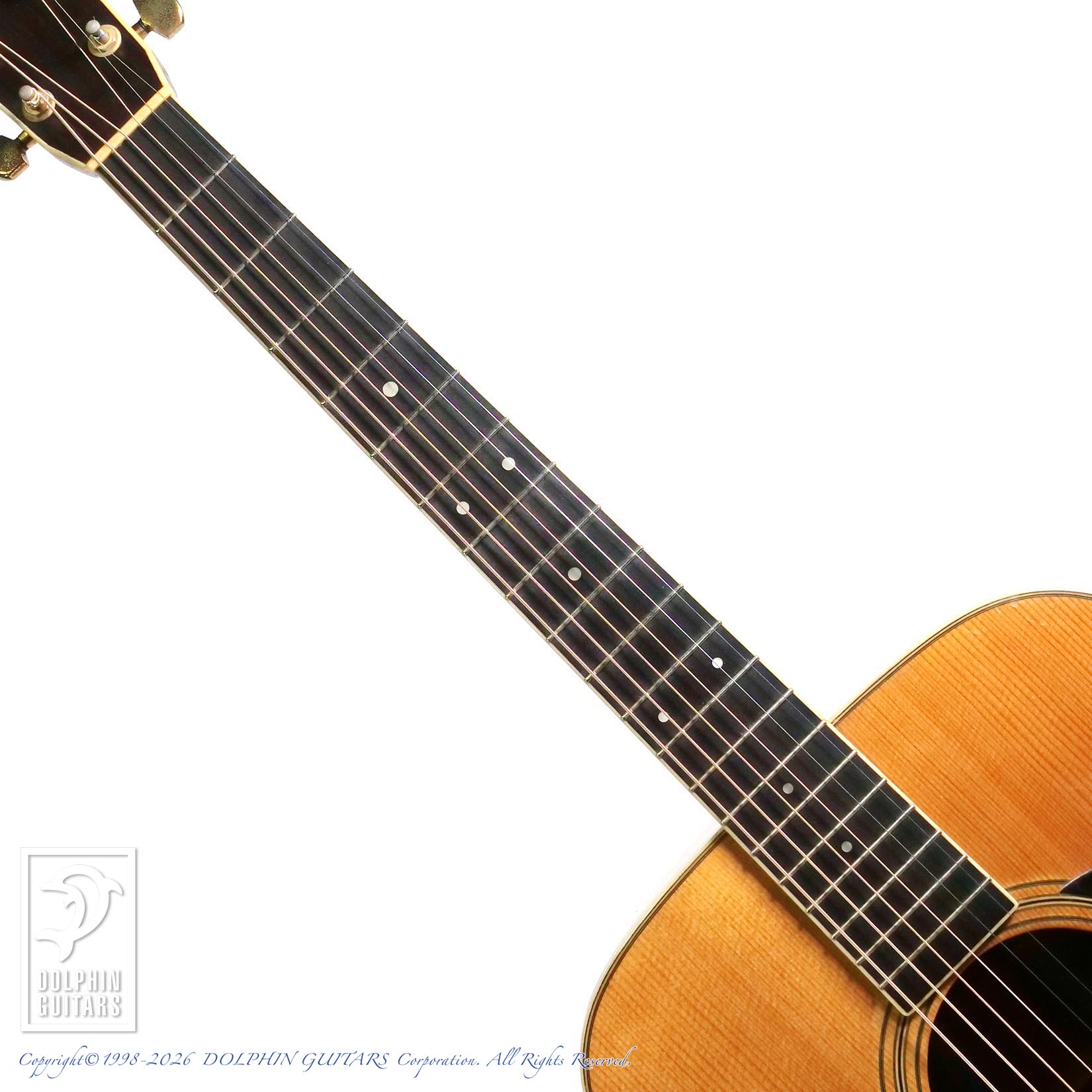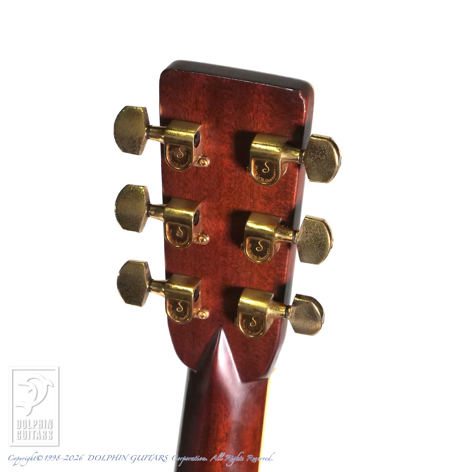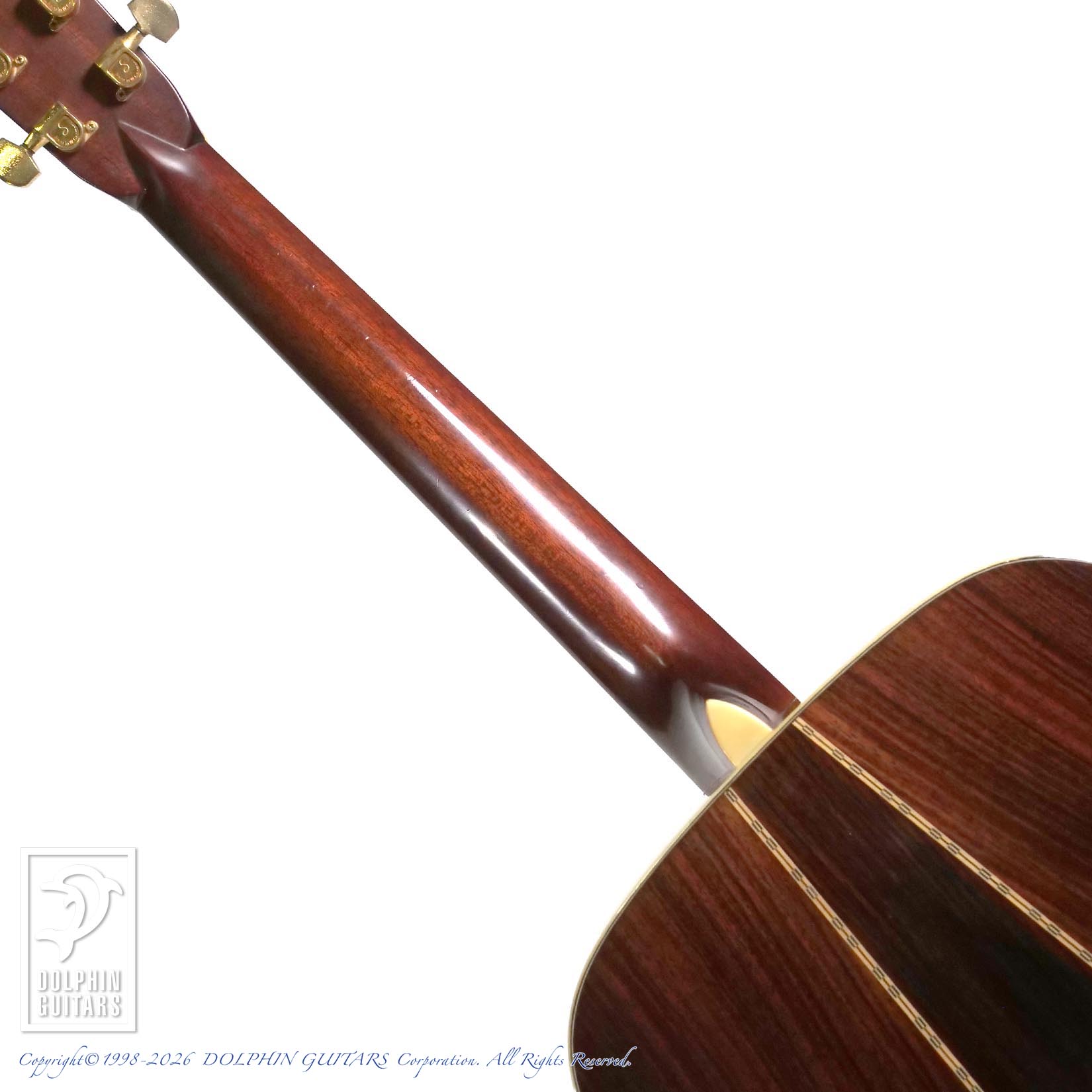 国内メーカー各社がこぞってアメリカ製アコースティックギターの研究・再現に力を注ぎ、材の選定からブレーシング構造、装飾に至るまで本家を意識したモデルが数多く生み出されました。本器もそうした時代背景の中で誕生した一本で、3ピースバックは35を思わせます。ドレッドノートらしい力強い低音と伸びやかな高音を備えた、当時の国産ギターの高い製作技術を感じさせるモデルです。