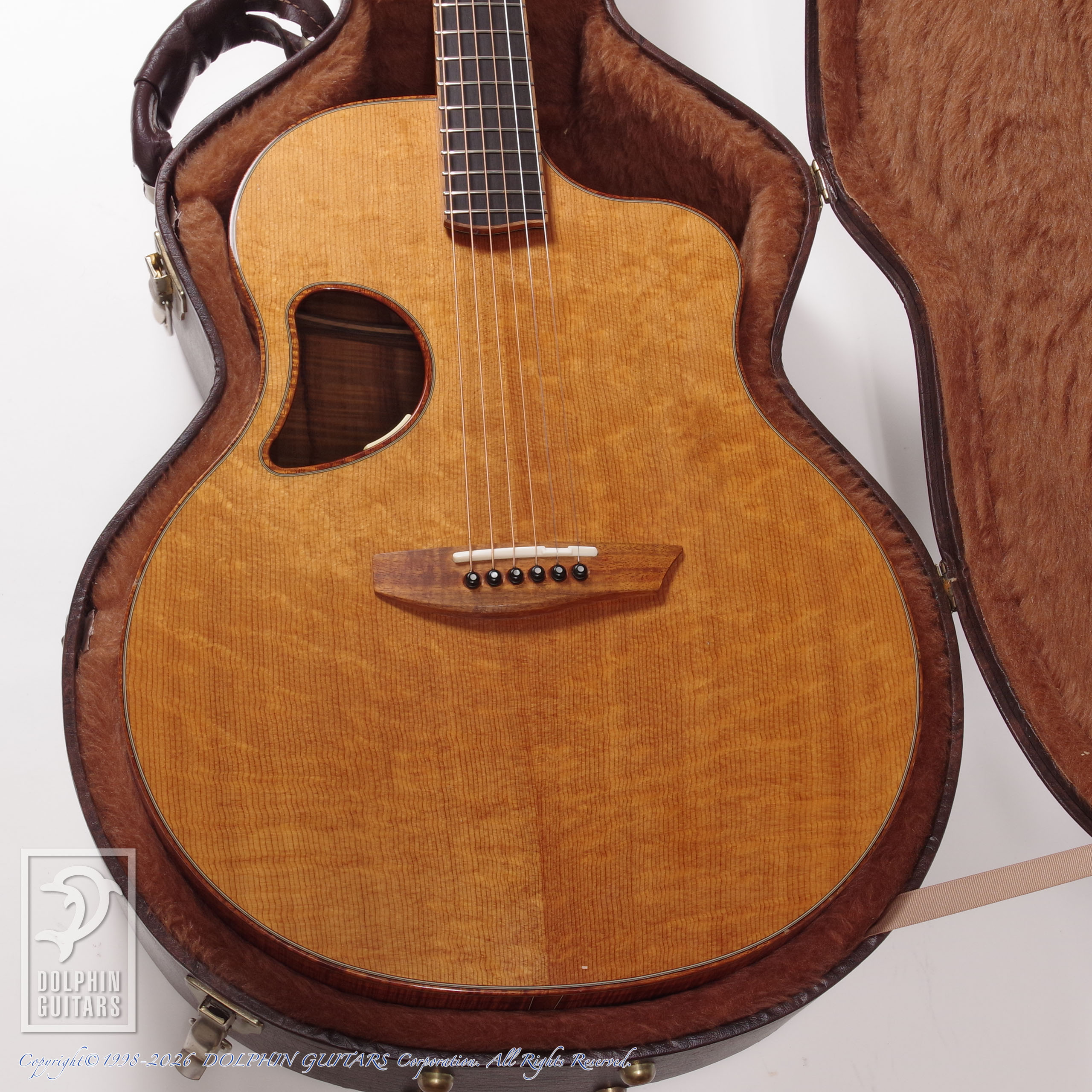 コアウッドの持つ深く甘いトーン、オフセットされたサウンド・ホールからは深く透き通った中低域を感じ、伸び、艶のある高域はその存在感を主張します。