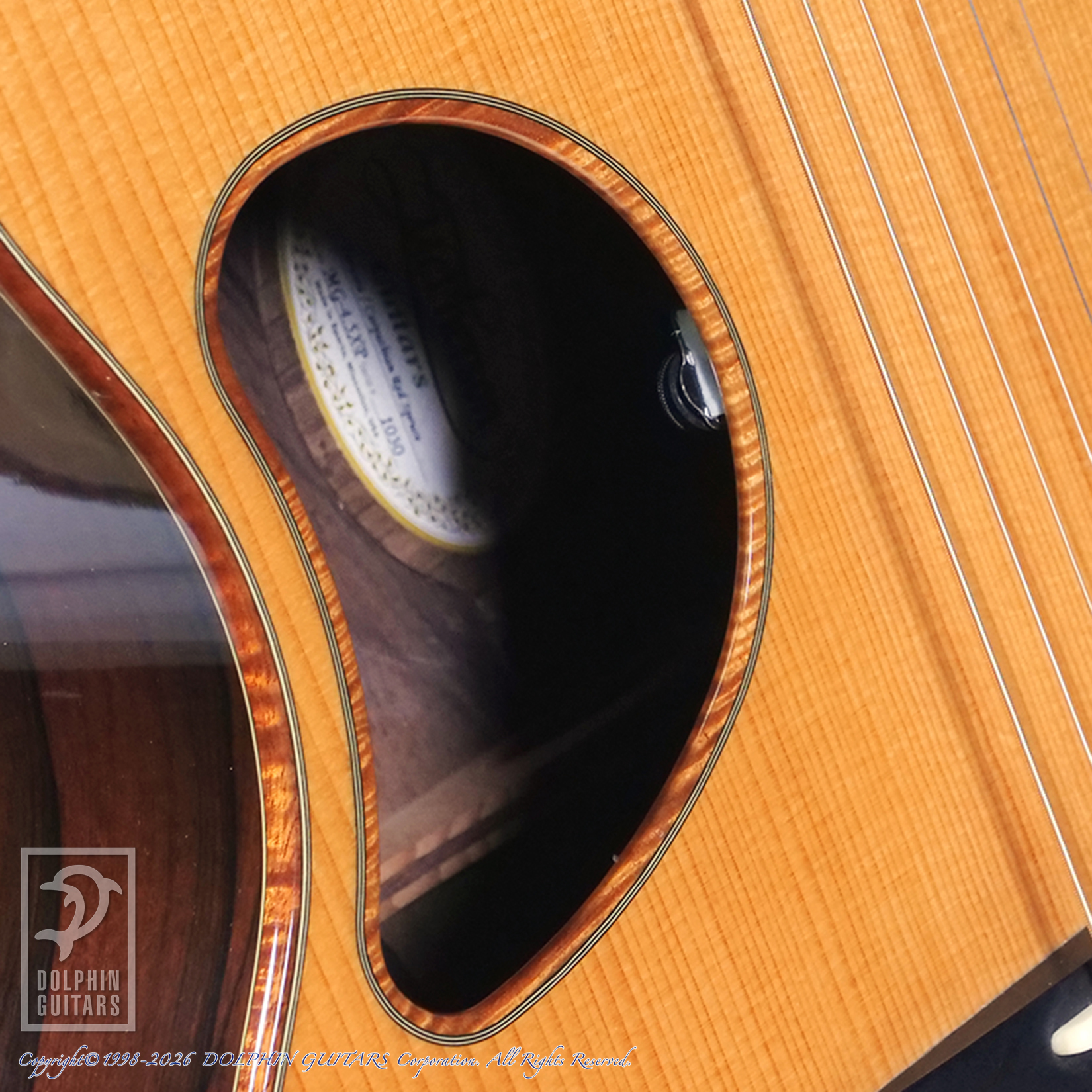 マット・マクファーソンは理想のサウンドを求めて長年研究し、オフセットされたサウンドホールや複雑なブレイシング構造など、独自で考案したオリジナルギター。
