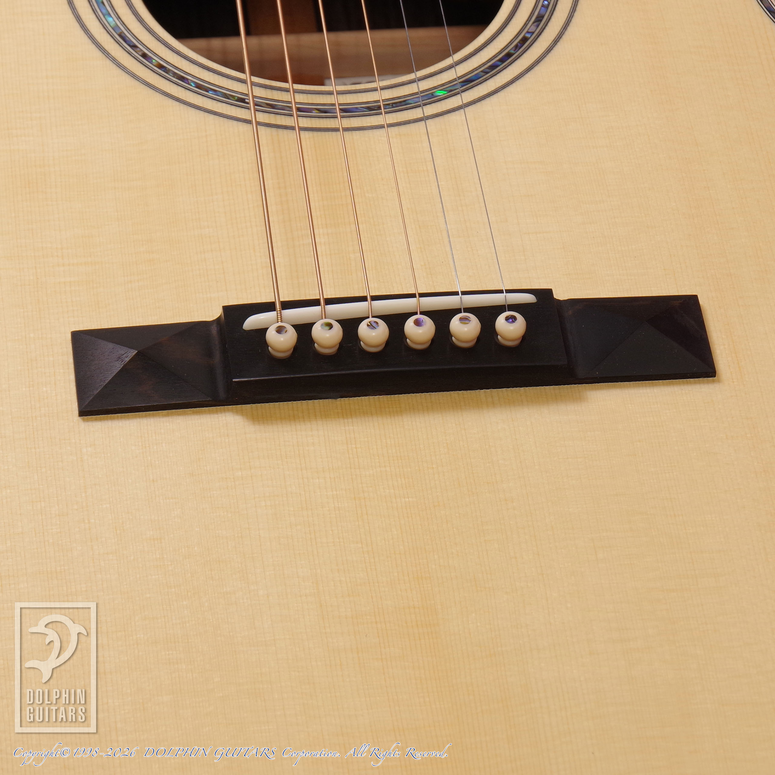 00と000サイズとの中間サイズのボディに645.2mmスケールを採用したSoloシリーズ。選び抜かれたジャーマンスプルーストップに華麗なメキシコ貝インレイ。職人の手によって一つずつ丁寧に削り出されたピラミッドブリッジなどなど、高級感溢れるモデル Solo Premiumです。