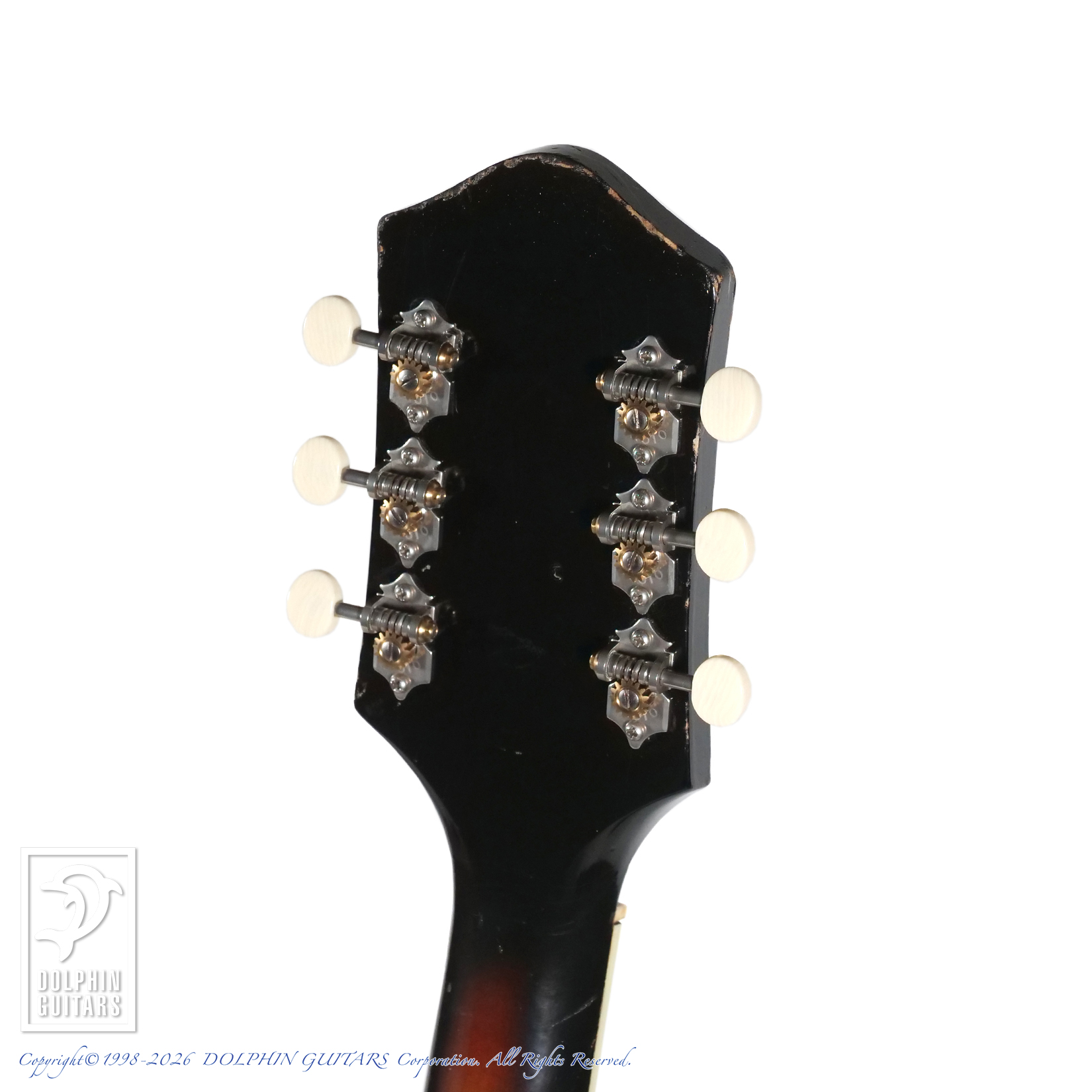 残念ながらリアピックアップはおそらく断線しており、鳴りません。しかしながらその回復よりも外観を優先してしまうほどの魅力的なPUですので、そのままの状態で受け継がれております。
