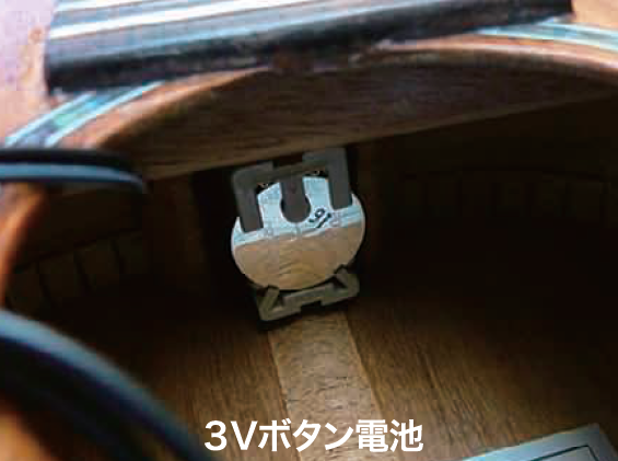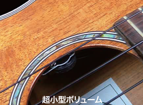 またウクレレの鳴りを損なわないよう、3Vのボタン電池をはじめ全てのパーツを小型軽量に設計。