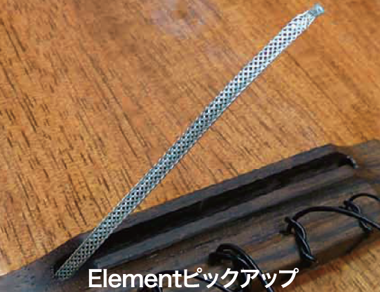 最も重要なピックアップ部はアコースティックギターのピックアップとしてプロアマ問わず絶大な人気を誇る定番ピックアップ「エレメント」をウクレレ専用にカスタマイズしたもの。