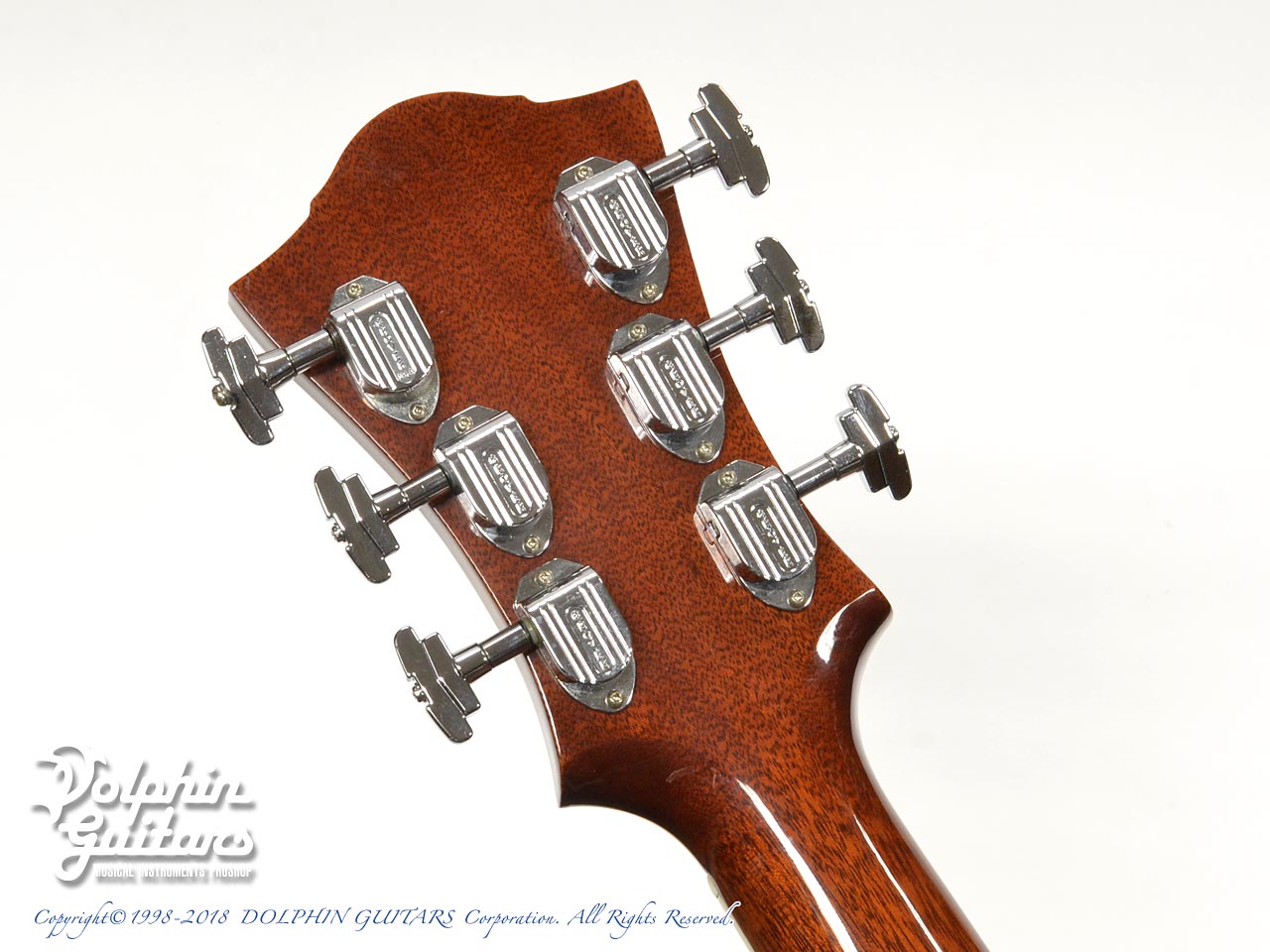 エピフォンの流れを汲んだ曲線が美しいヘッドシェイプにインペリアルタイプのペグ、個性的なインレイなどなど、派手なカントリー衣装にも負けない豪華な仕上がりです。