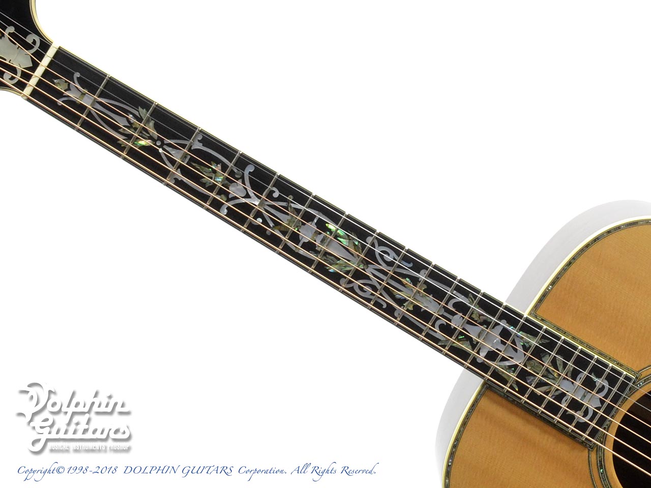 42スタイルをベースにヘッドとフィンガーボードに複雑なトーチインレイを、、、楽器の枠を飛び越えて工芸品の域に達しています。