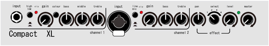 貴方の楽器や声を自然な状態で再生します。ピエゾセラミック・ピックアップやマイクロフォン、その他あらゆるラインシグナルに対応し、なんと200ワットの強力なアンプが、