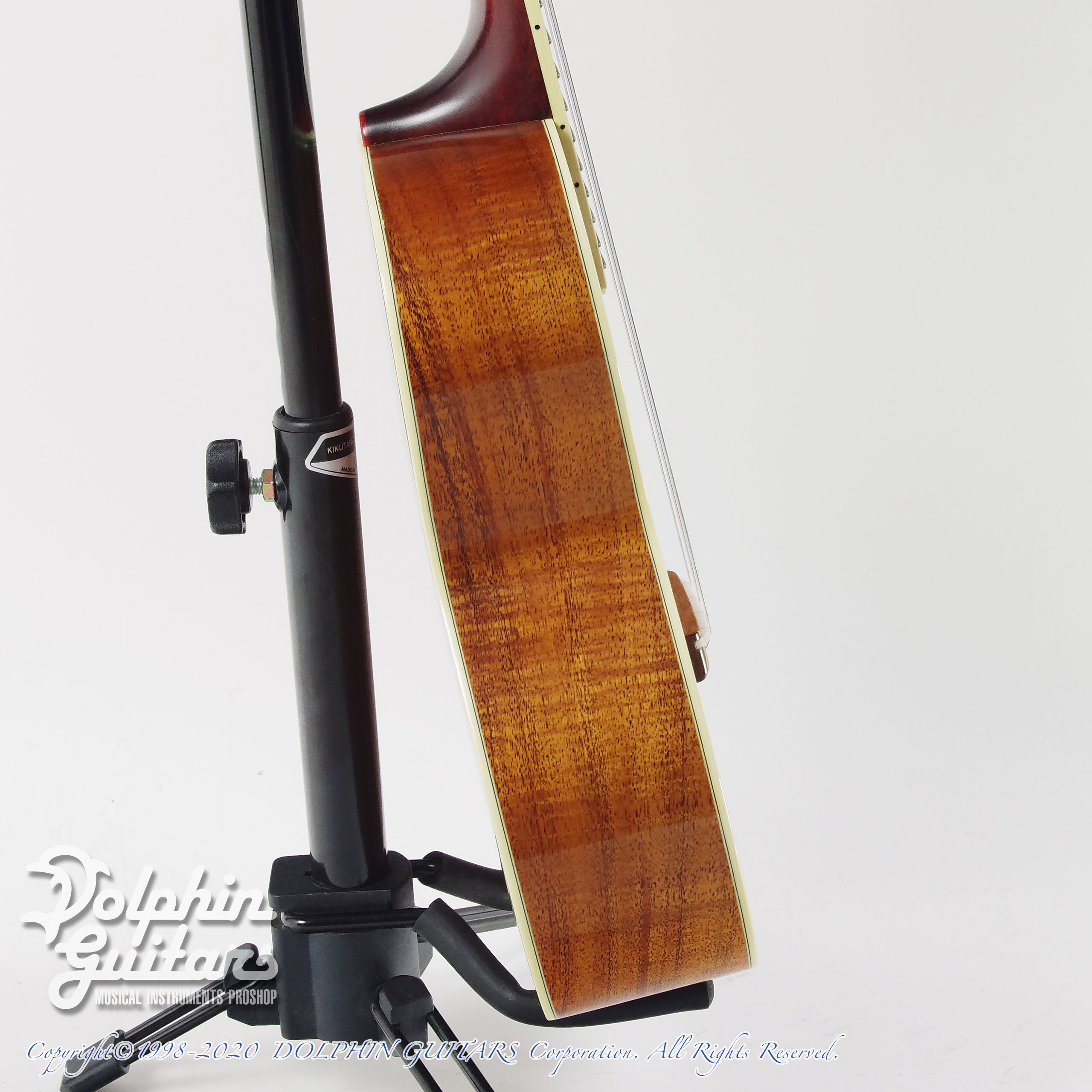 ハワイアン・コアウッド・ボディ、表板、裏板は一枚板を使用、ホンデュラス・マホガニー・ネック、エボニー指板、コア・ブリッジ、スノーフレイクス指板インレイ、アバロン・パフリング、アバロン・ロゼッタ、ゴトー製UPTチューナー。