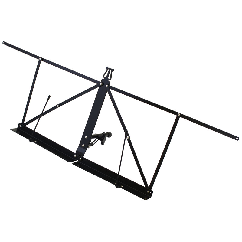 スチール製のシンプルな卓上譜面台。 折りたたみも可能です。専用ポーチも付属するので持ち運びにも便利です。