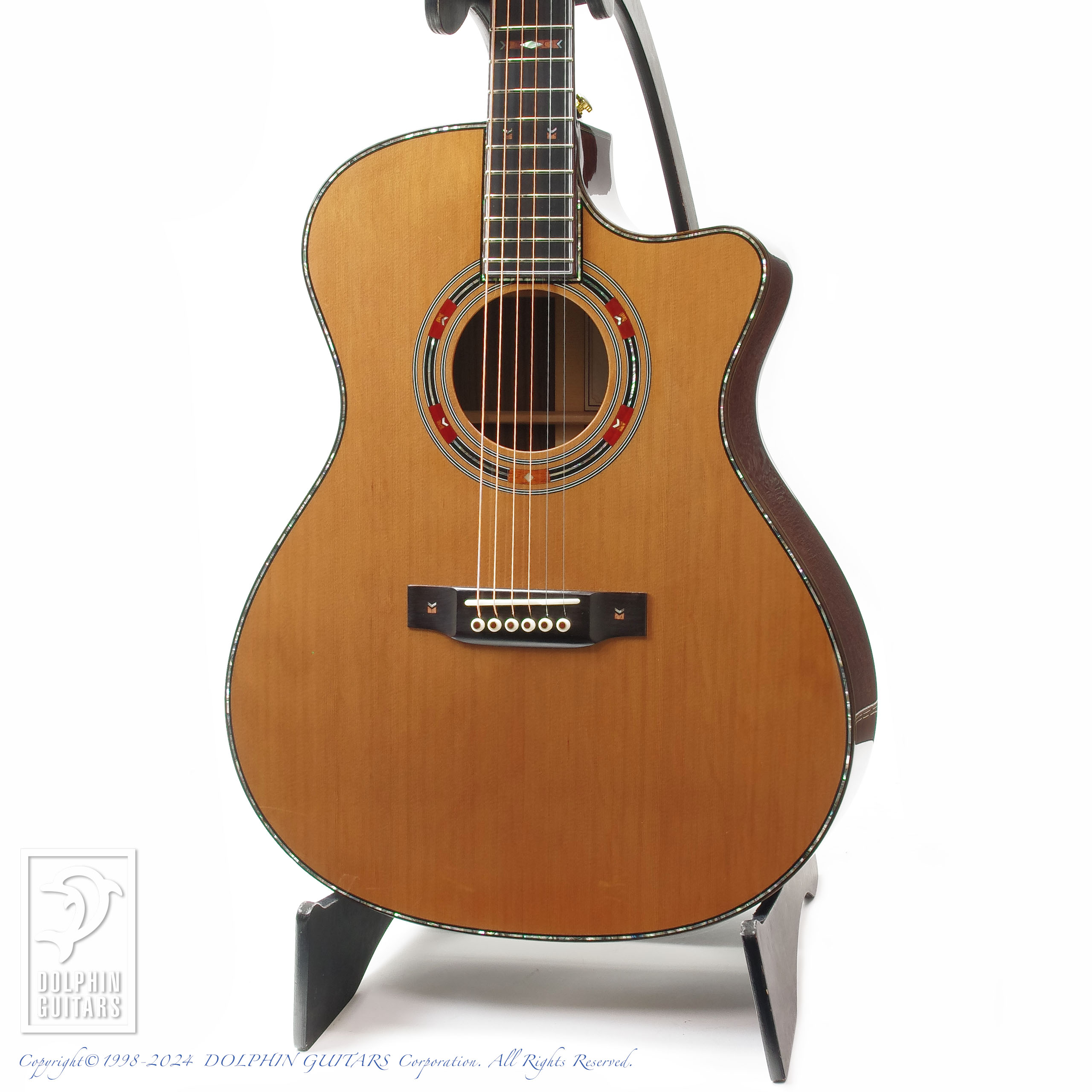 過去に内部ブレーシング剥がれ修復のため、バック板を剥がしリペア、バックのみリフィニッシュをし、再接着されております。また、トラスロッドカバーのネジが2箇所、欠損しております。