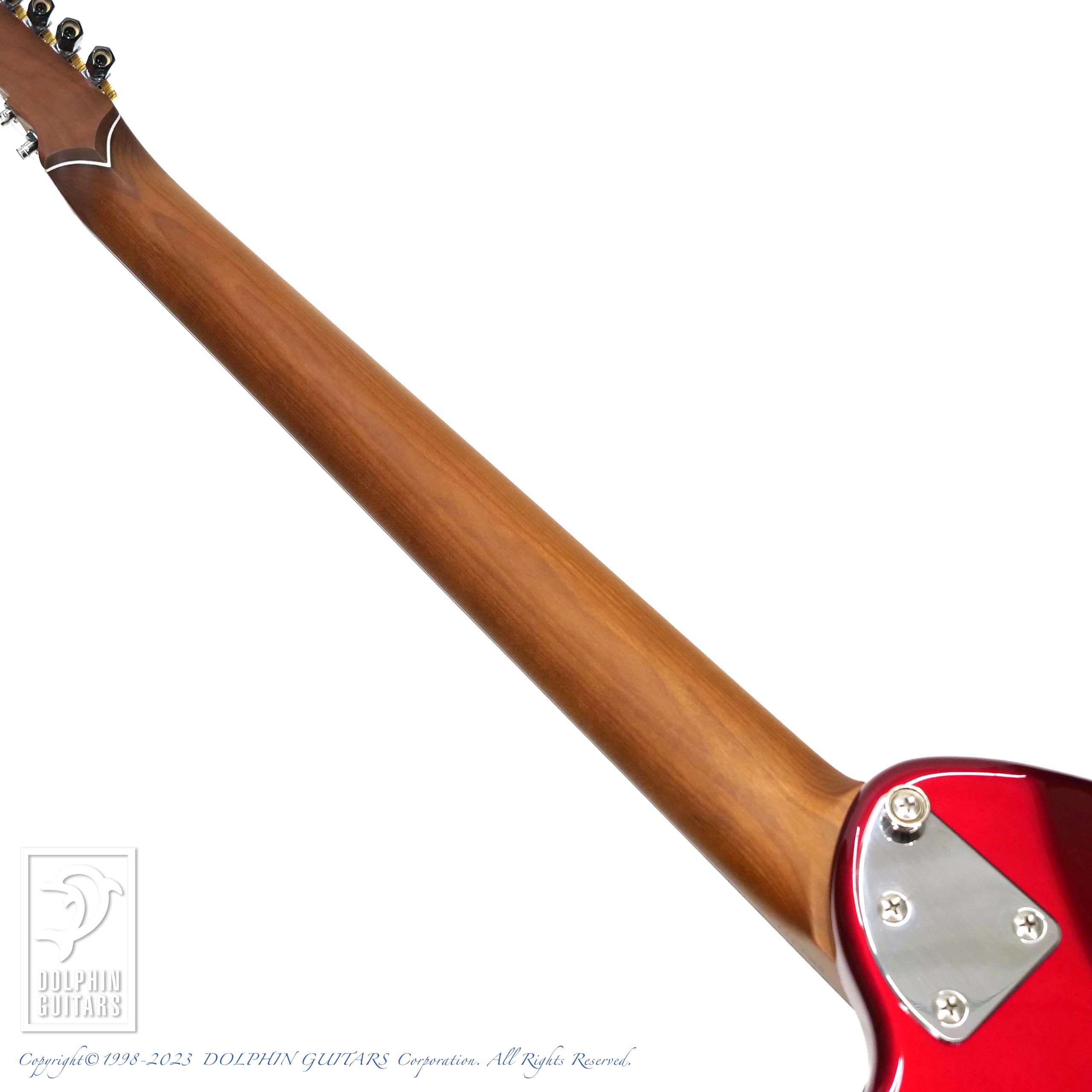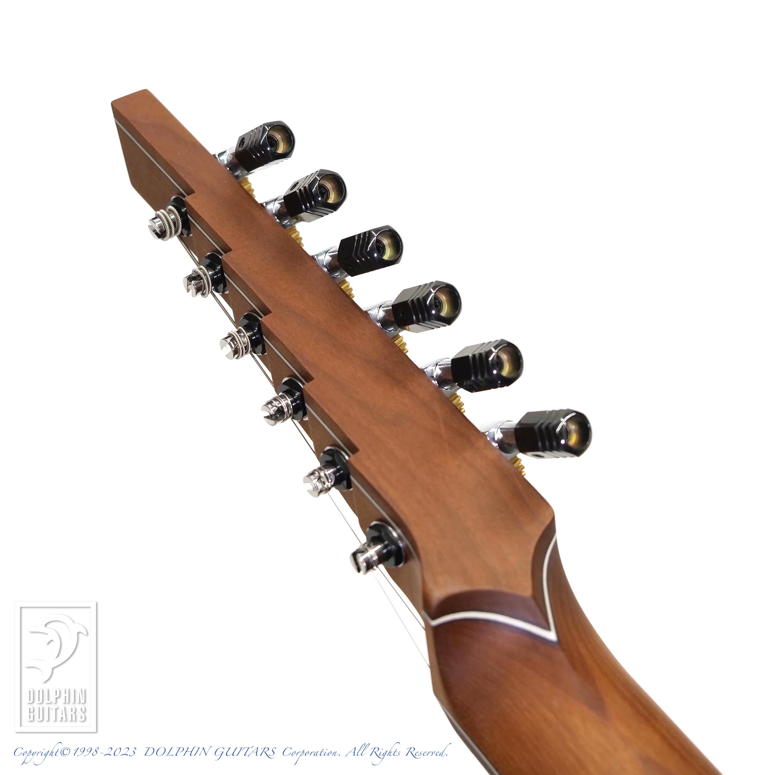 ネックのメイプルは人工的に長時間、高音加熱処理することで、長い年月を経た木材のような乾燥状態を創り出すトリファイド加工を施したマテリアルを使用。大変軽量で秀逸なボディバランスを生みます。デザインと共存する精密な設計による抱えやすさは流石です。